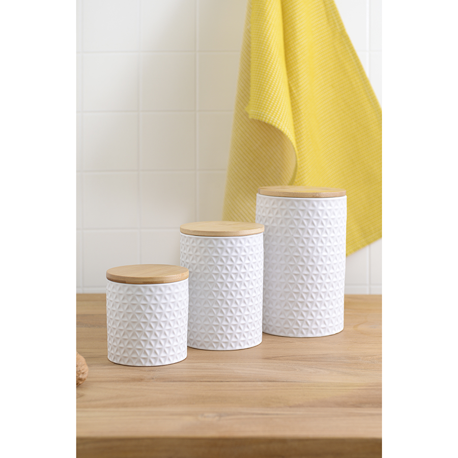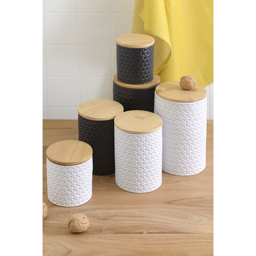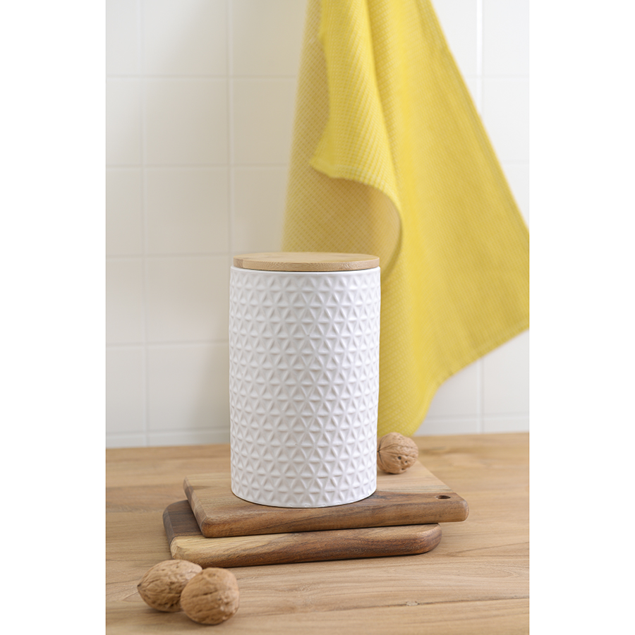 Банка Farah – прекрасный вариант для хранения круп, макаронных изделий, чая, кофе, муки, специй и пр. Емкость из натуральной керамики является экологичной, не пропускает влагу, свет, не меняет вкус и запах продуктов. Крышка из бамбука гармонично завершает силуэт. Такой дизайн великолепно сочетается с различными стилевыми решениями. Материал изготовления обеспечивает изделию устойчивость к износу и долговечность.