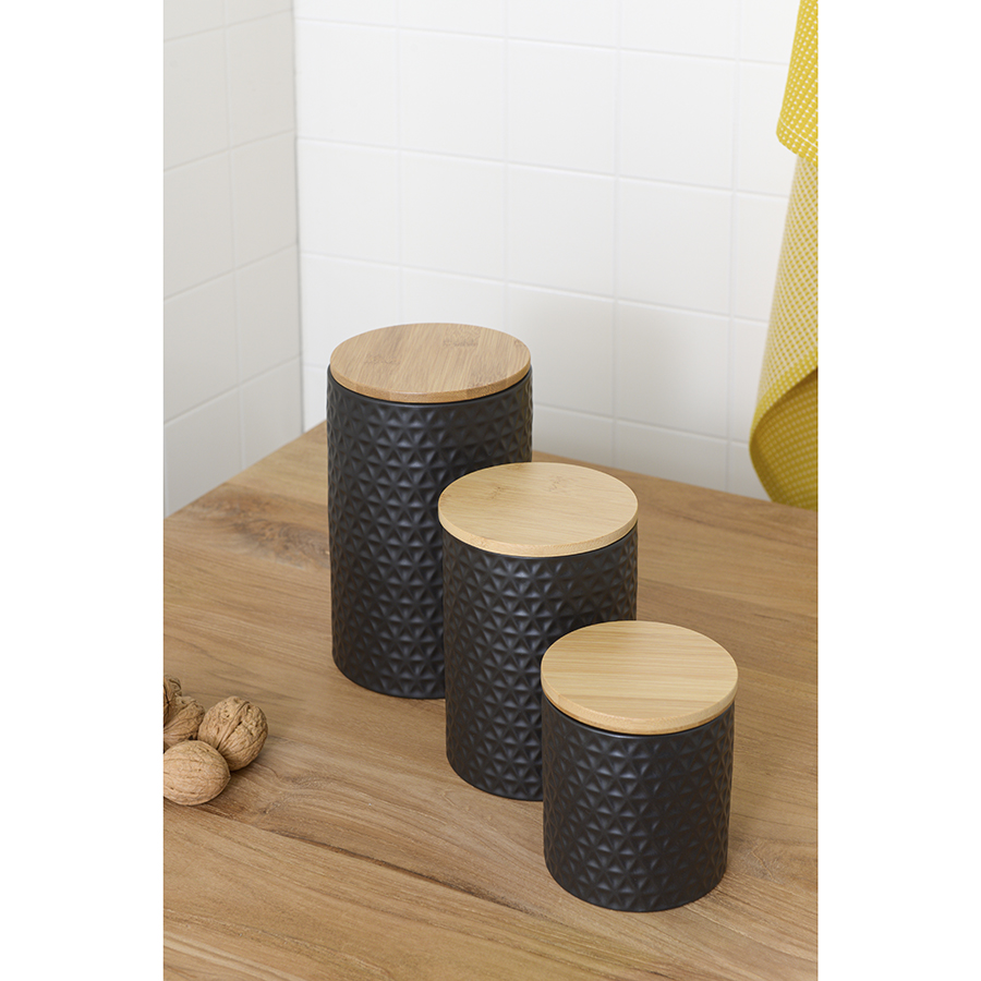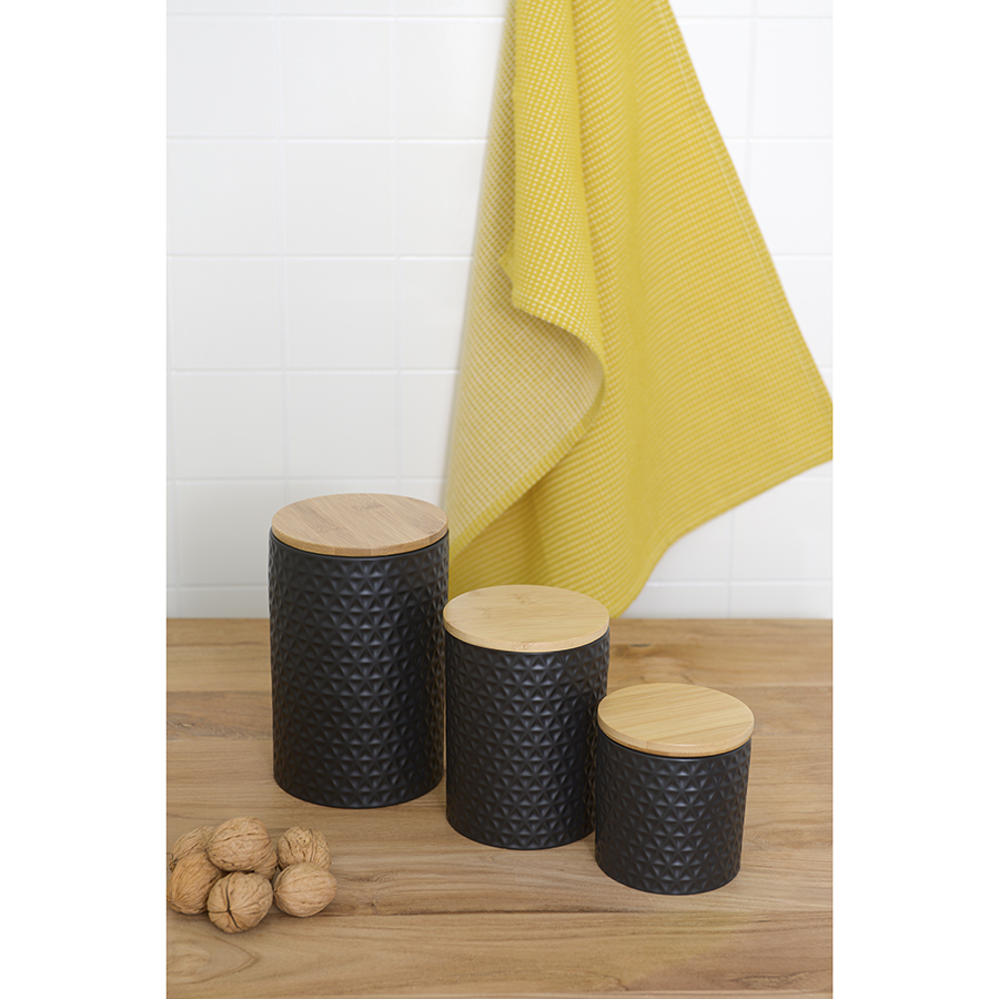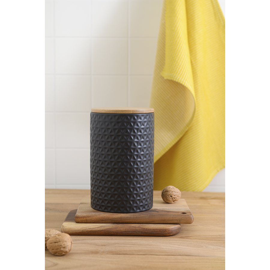 Банка Farah – прекрасный вариант для хранения круп, макаронных изделий, чая, кофе, муки, специй и пр. Емкость из натуральной керамики является экологичной, не пропускает влагу, свет, не меняет вкус и запах продуктов. Крышка из бамбука гармонично завершает силуэт. Такой дизайн великолепно сочетается с различными стилевыми решениями. Материал изготовления обеспечивает изделию устойчивость к износу и долговечность.