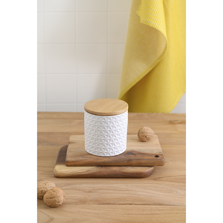 Банка Farah – прекрасный вариант для хранения круп, макаронных изделий, чая, кофе, муки, специй и пр. Емкость из натуральной керамики является экологичной, не пропускает влагу, свет, не меняет вкус и запах продуктов. Крышка из бамбука гармонично завершает силуэт. Такой дизайн великолепно сочетается с различными стилевыми решениями. Материал изготовления обеспечивает изделию устойчивость к износу и долговечность.