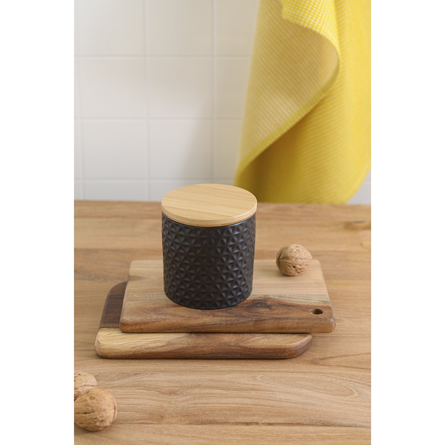 Банка Farah – прекрасный вариант для хранения круп, макаронных изделий, чая, кофе, муки, специй и пр. Емкость из натуральной керамики является экологичной, не пропускает влагу, свет, не меняет вкус и запах продуктов. Крышка из бамбука гармонично завершает силуэт. Такой дизайн великолепно сочетается с различными стилевыми решениями. Материал изготовления обеспечивает изделию устойчивость к износу и долговечность.