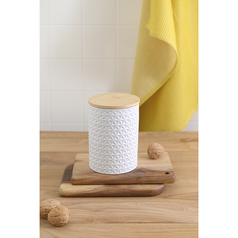 Банка Farah – прекрасный вариант для хранения круп, макаронных изделий, чая, кофе, муки, специй и пр. Емкость из натуральной керамики является экологичной, не пропускает влагу, свет, не меняет вкус и запах продуктов. Крышка из бамбука гармонично завершает силуэт. Такой дизайн великолепно сочетается с различными стилевыми решениями. Материал изготовления обеспечивает изделию устойчивость к износу и долговечность.