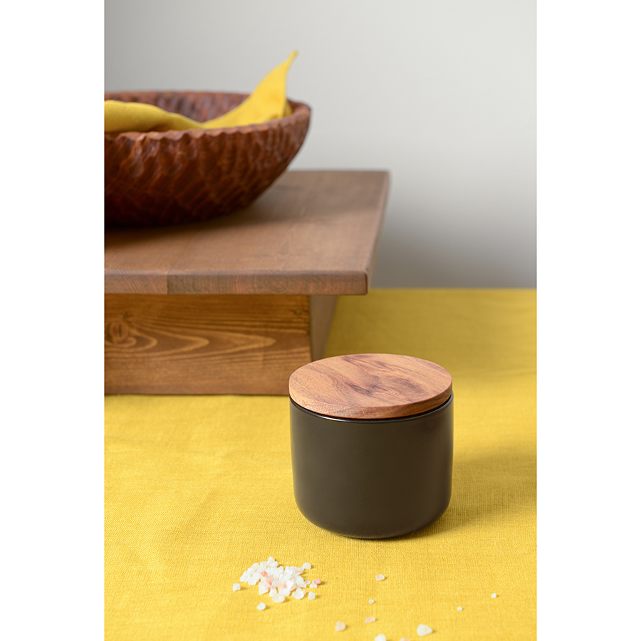 Банка от бренда Smart Solutions имеет стильный дизайн и прекрасные эксплуатационные характеристики. Такая посуда займет достойное место на любой современной кухне. Емкость из каменной керамики не впитывает запахи, не меняет вкус содержимого, благодаря чему идеально подходит для хранения таких продуктов, как чай, кофе, специи, мука, сухофрукты и пр. Крышка из акации плотно прилегает, исключая попадание внутрь посторонних предметов и пыли. Экологичные и практичные материалы гарантируют безопасное использование и простой уход.