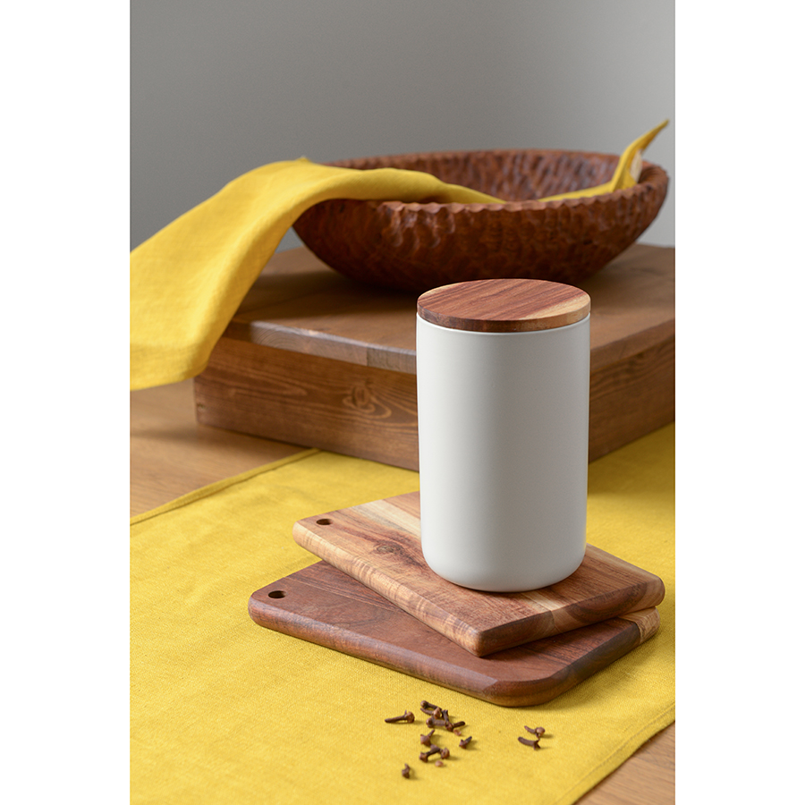 Банка от бренда Smart Solutions имеет стильный дизайн и прекрасные эксплуатационные характеристики. Такая посуда займет достойное место на любой современной кухне. Емкость из каменной керамики не впитывает запахи, не меняет вкус содержимого, благодаря чему идеально подходит для хранения таких продуктов, как чай, кофе, специи, мука, сухофрукты и пр. Крышка из акации плотно прилегает, исключая попадание внутрь посторонних предметов и пыли. Экологичные и практичные материалы гарантируют безопасное использование и простой уход.