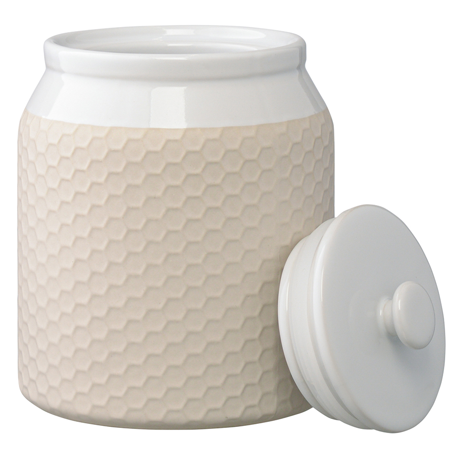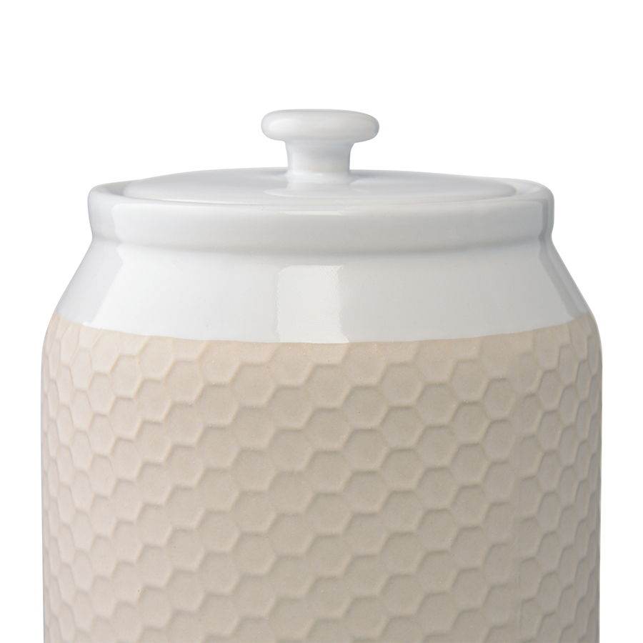 Банка для хранения Marshmallow великолепно впишется в интерьер современной кухни. Рельефный узор, напоминающий соты, придает емкости из каменной керамики особую привлекательность и оригинальность. Материал изготовления является экологичным и долговечным, простой в уходе. Плотно прилегающая крышка обеспечивает защиту от попадания внутрь насекомых, пыли и прочего мусора. Посуда идеально подходит для хранения круп, орехов, сухофруктов, чая и др.
