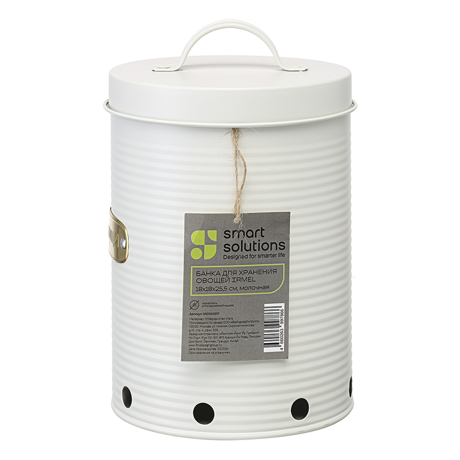 Банка для хранения овощей Irmel от бренда Smart Solutions станет прекрасным дополнением современного кухонного интерьера. Ее дизайн органично вписывается в различные стилевые решения: минимализм, лофт, фьюжн, эклектика, афро, сканди и другие.