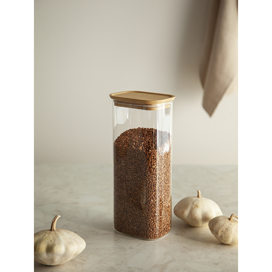 Банка Glass Bamboo от бренда Smart Solutions – удобное и практичное решение для хранения сыпучих продуктов. Вы можете использовать ее под любую крупу, макаронные изделия, сухофрукты, орехи, чай или кофе. Набор из банок разных объемов позволит навести порядок на кухне и дополнить интерьер стильными акцентами.