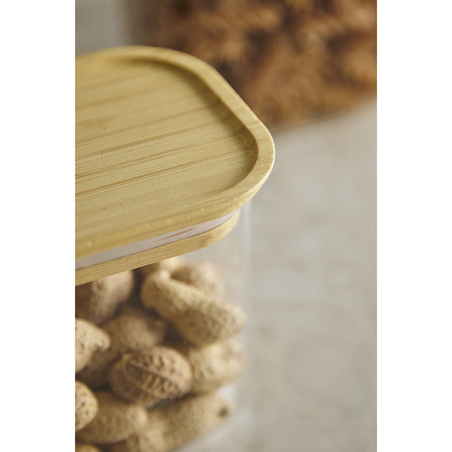 Банка Glass Bamboo от бренда Smart Solutions – удобное и практичное решение для хранения сыпучих продуктов. Вы можете использовать ее под любую крупу, макаронные изделия, сухофрукты, орехи, чай или кофе. Набор из банок разных объемов позволит навести порядок на кухне и дополнить интерьер стильными акцентами.