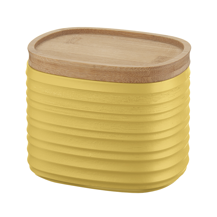 Емкость для хранения из переработанного пластика с экологичной бамбуковой крышкой поможет навести порядок на кухне и украсит пространство.