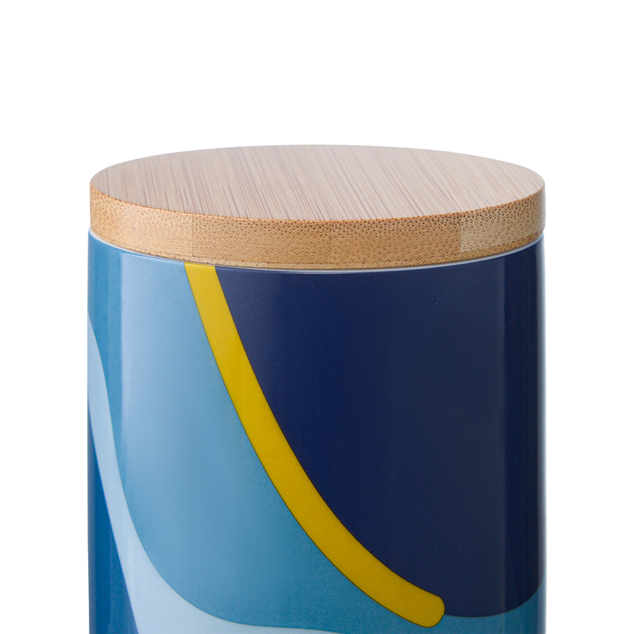 Банка для хранения синего цвета с авторским принтом из коллекции Freak Fruit прекрасно подходит для хранения бакалеи. Изделие , ,в духе абстракционизма притягивает взгляды, освежает интерьер и делает его более современным. Принт не имеет повторяющегося раппорта и представляет собой единую законченную картину.
