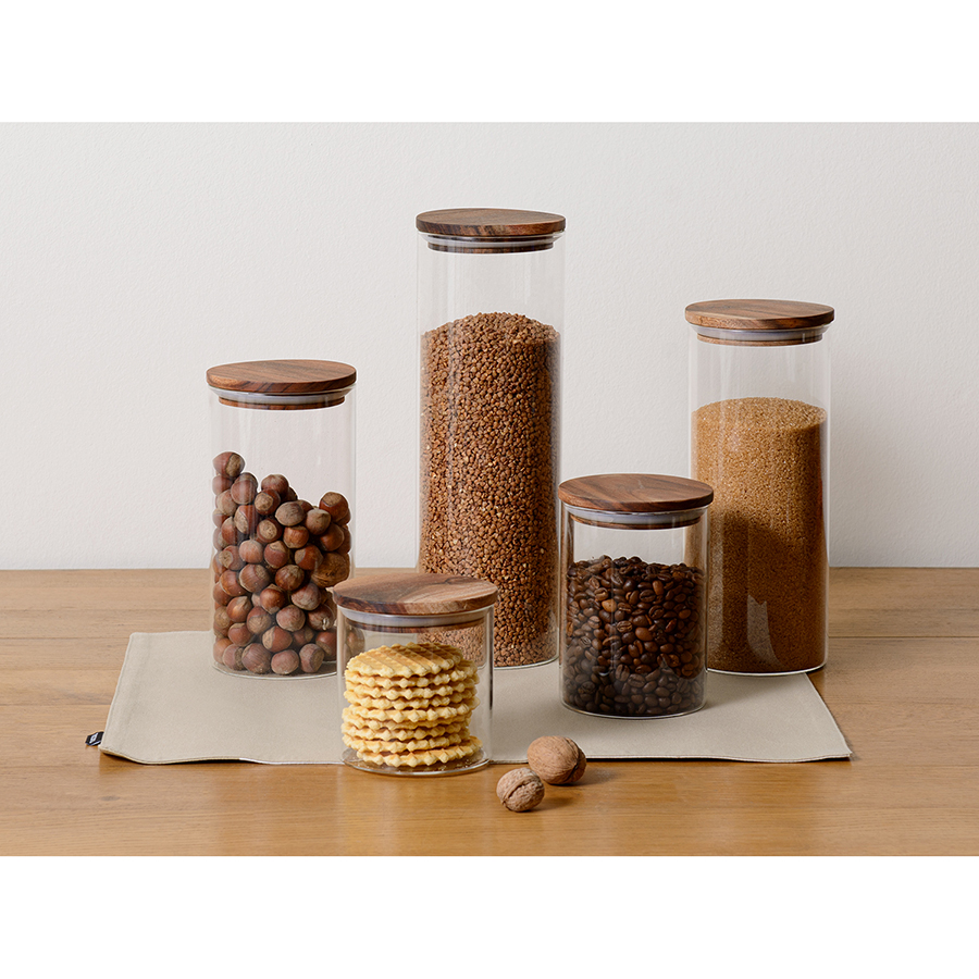 Банка для хранения в минималистичном дизайне поможет организовать порядок на кухне.