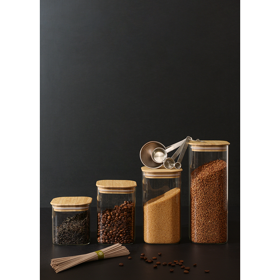 Банка для хранения в минималистичном дизайне поможет организовать порядок на кухне.