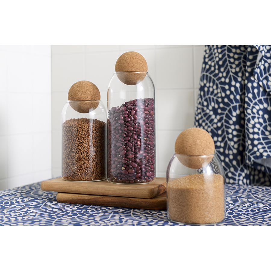 Банка для хранения из боросиликатного стекла с оригинальной круглой крышкой великолепно впишется в интерьер современной кухни. Ее можно использовать под специи, чай, кофе и другие сыпучие продукты. Компактная емкость не занимает много места на полке, стеллаже и в шкафу. Материал изготовления отличается устойчивостью к температурным перепадам и повреждениям, легко очищается от загрязнений.