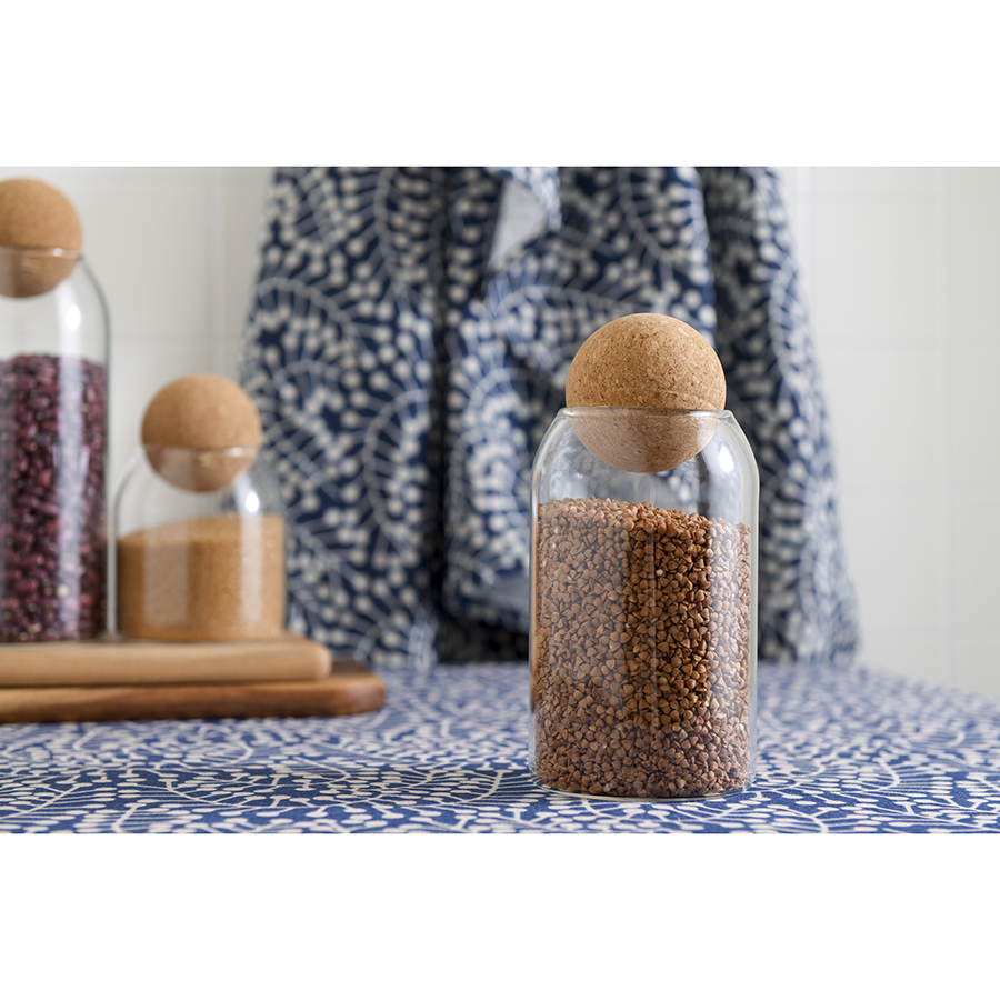 Банка для хранения из боросиликатного стекла с оригинальной круглой крышкой великолепно впишется в интерьер современной кухни. Ее можно использовать под специи, чай, кофе и другие сыпучие продукты. Компактная емкость не занимает много места на полке, стеллаже и в шкафу. Материал изготовления отличается устойчивостью к температурным перепадам и повреждениям, легко очищается от загрязнений.
