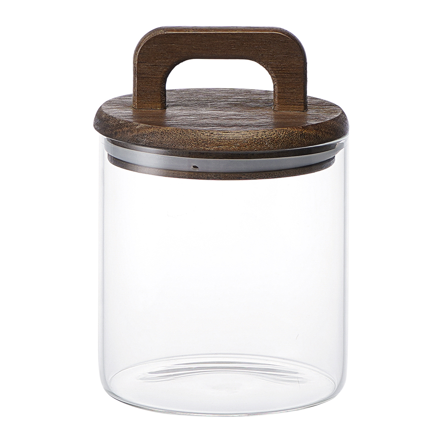 Емкость изготовлена из стекла. Материал является гигиеничным, химически инертным, благодаря чему идеально подходит для контакта с пищей. Крышка из древесины акации с интересной ручкой делает дизайн оригинальным и обеспечивает удобное использование. Специальная прослойка из силикона гарантирует плотное закрывание и герметичность