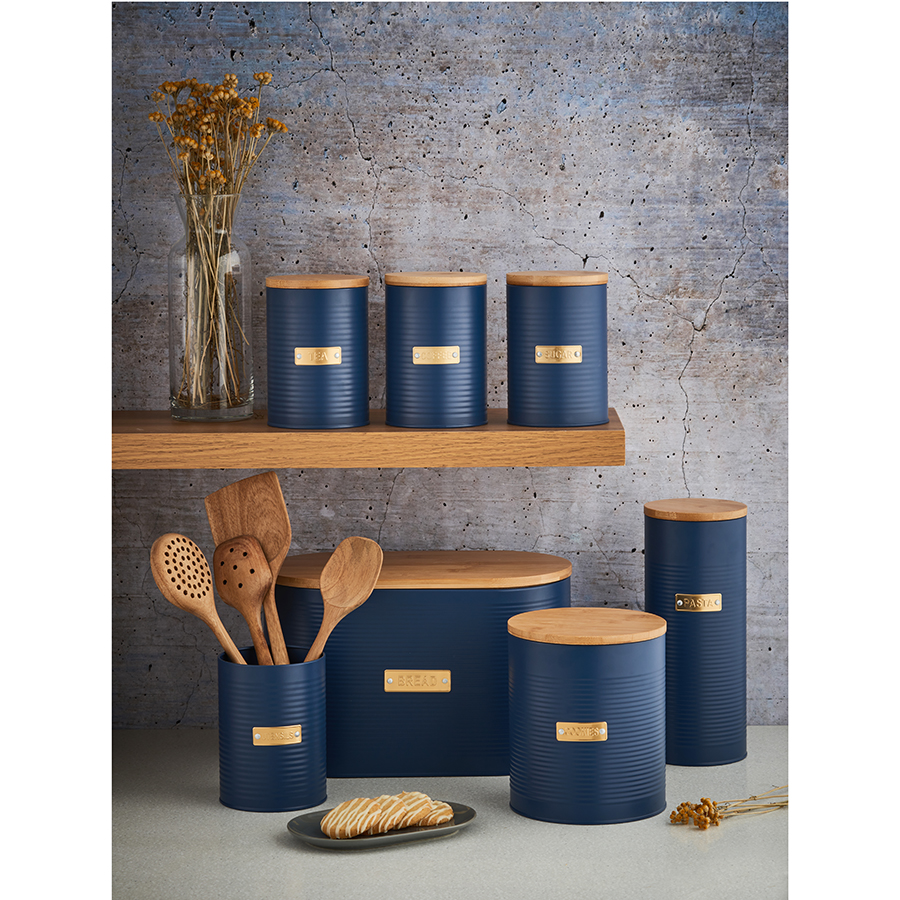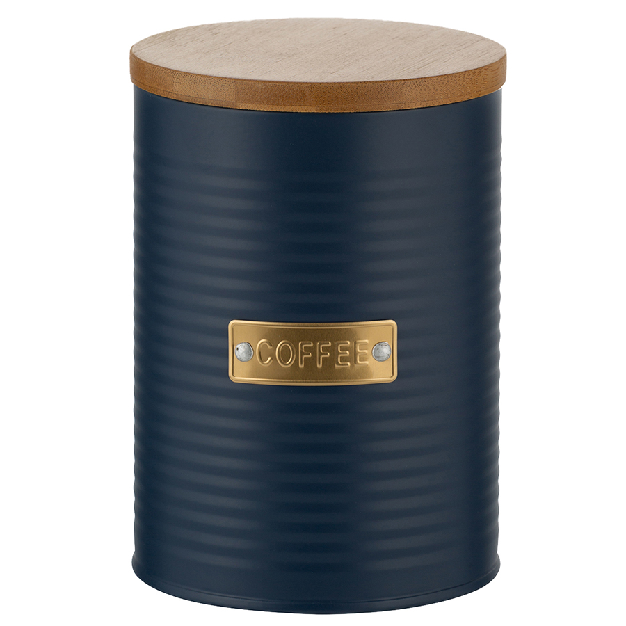 Банка для кофе из коллекции Otto – удобное решение для хранения сыпучих продуктов и стильный элемент кухонного интерьера. Эргономичный контейнер выполнен из прочной, устойчивой к коррозии и деформации углеродистой стали. Плотно прилегающая бамбуковая крышка с силиконовым уплотнителем защищает содержимое банки от заветривания и отсыревания. Рельефная поверхность и красивое сочетание золотистого декора с матовым покрытием насыщенного синего цвета делает дизайн интересным. Такая посуда отлично вписывается в интерьер, оформленный в классическом и современном стиле.
