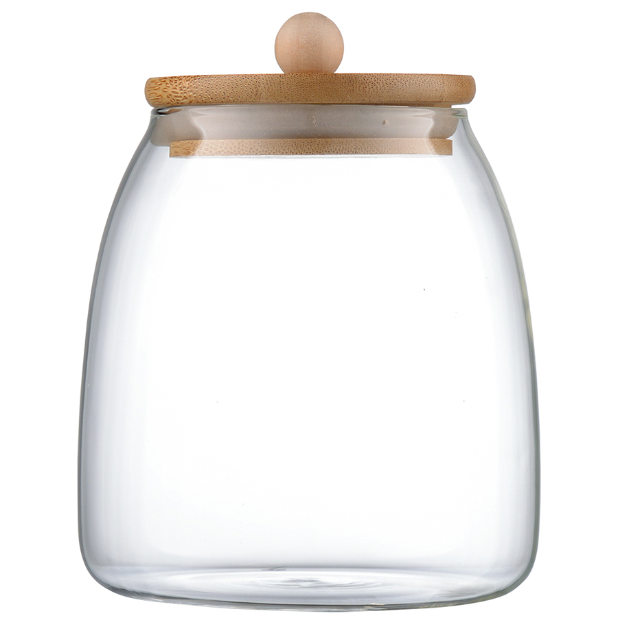 Банка плотно закрывается благодаря силиконовому ободку на бамбуковой крышке. Боросиликатное стекло отличается прочностью.