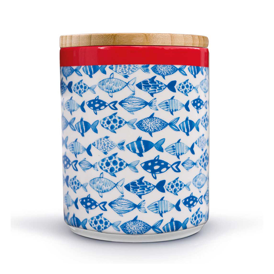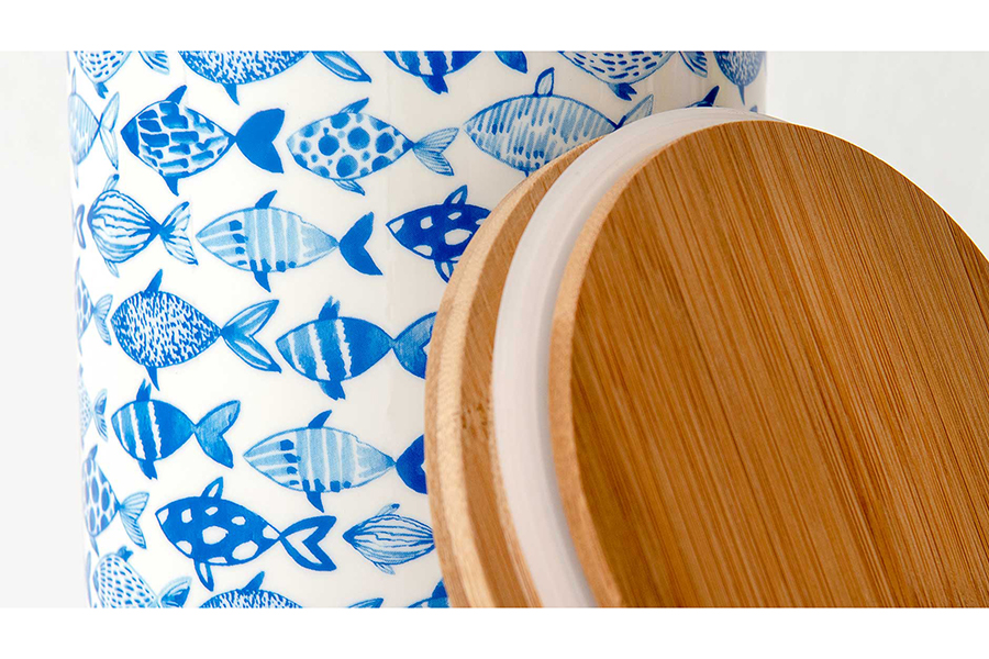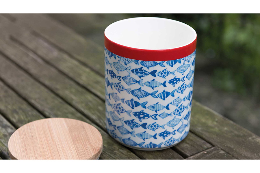 Фарфоровая емкость с герметичной крышкой Fish станет стильным украшением на современной кухне. Банка идеально подходит для хранения сыпучих продуктов: пасты, муки, круп, кофе. Классическая форма и яркий дизайн гармонично сочетаются с тончайшим фарфором высокого качества. Банка упакована в красивую подарочную коробку.