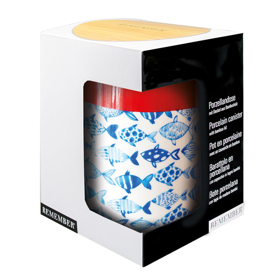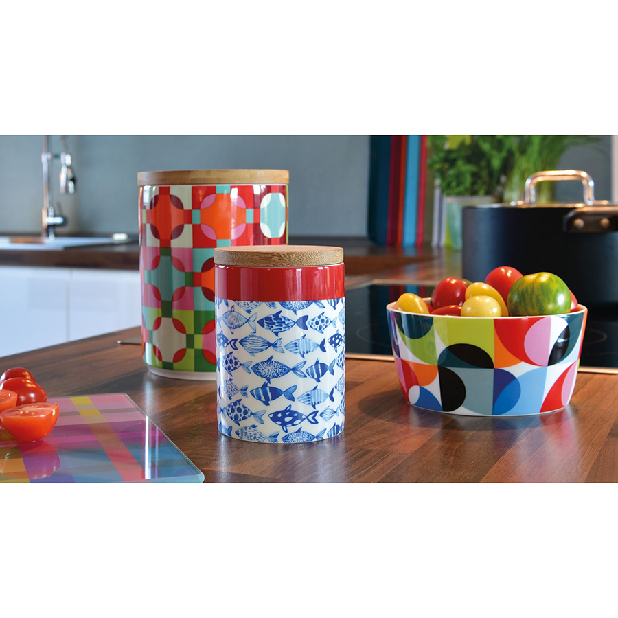 Фарфоровая банка в ярком оригинальном дизайне прекрасно подходит для хранения бакалеи.