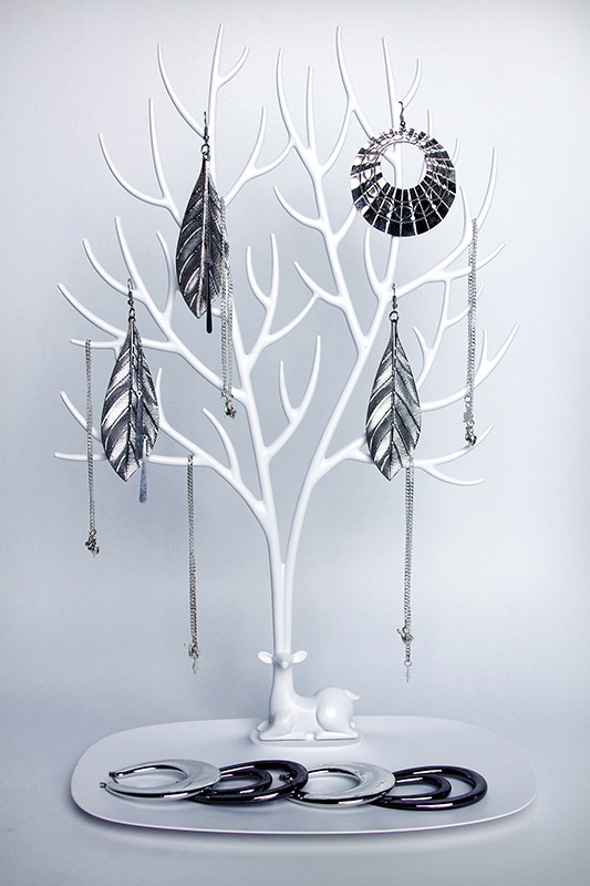 Потерянный браслет. Одна сережка без пары. Спутавшаяся намертво цепочка. Каждой женщине знакомы такие неприятности! Если вы думаете, что порядок возможен только в сказке, то специально для вас дизайнеры Qualy создали оленя вот с такими фантастическими рогами. На них разместятся всевозможные украшения, и они всегда будут на виду. Легко хранить, легко подбирать к наряду.