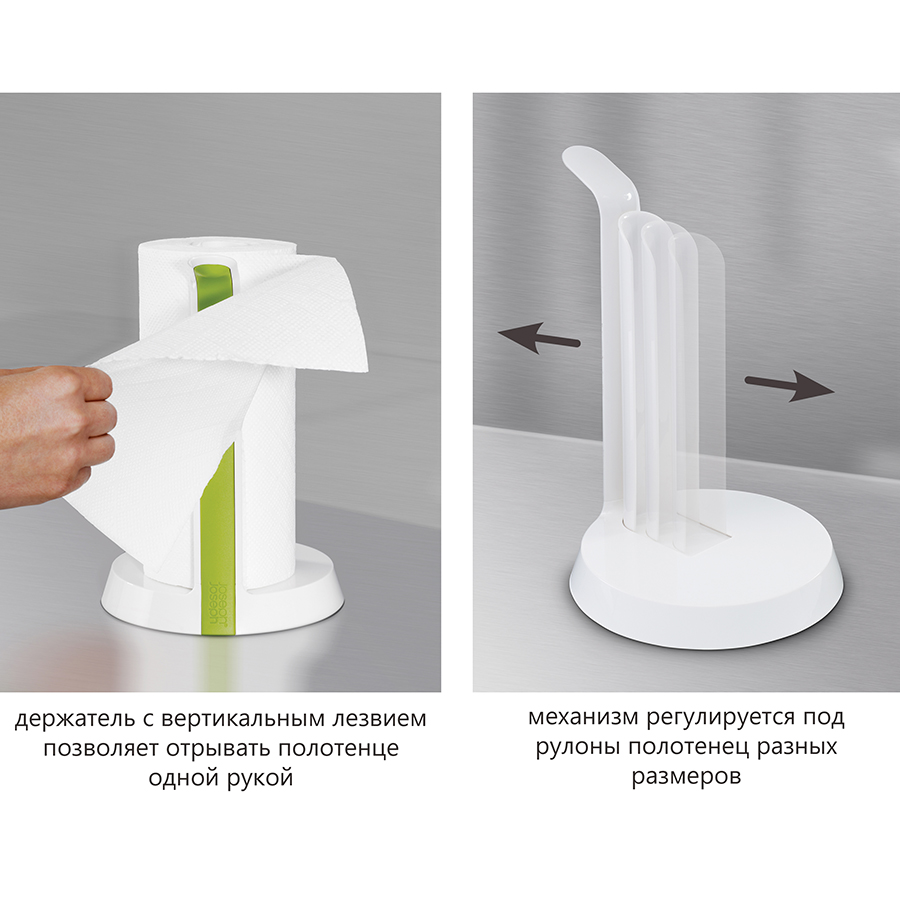 Утяжеленная подставка с нескользящим основанием обеспечивает устойчивую поддержку — держатель не падает и не скользит, даже если с силой потянуть за полотенца. Механизм регулируется под р самулоны различных размеров. Рулон всегда остается прочно зафиксированным на месте — неважно, сколько полотенец на нем осталось. Корпус оснащен ручкой, так что , ,держатель очень удобно переносить с места на место.