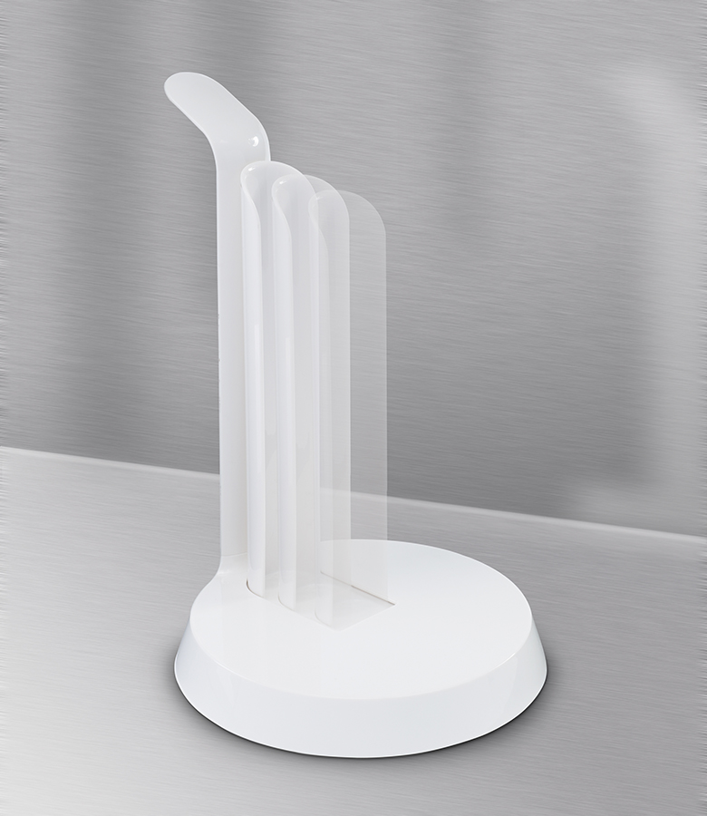 Вертикальный держатель позволяет отрывать бумажные полотенца одной рукой.