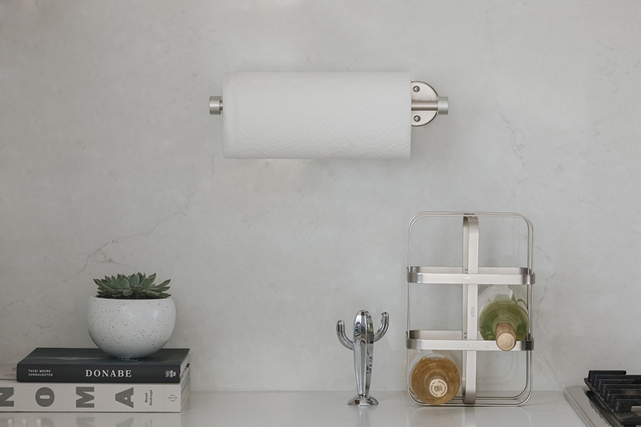Минималистичный и практичный держатель для бумажных полотенец со стальным покрытием отлично подойдет для кухни, оформленной в современном стиле. Дизайн: David Green.