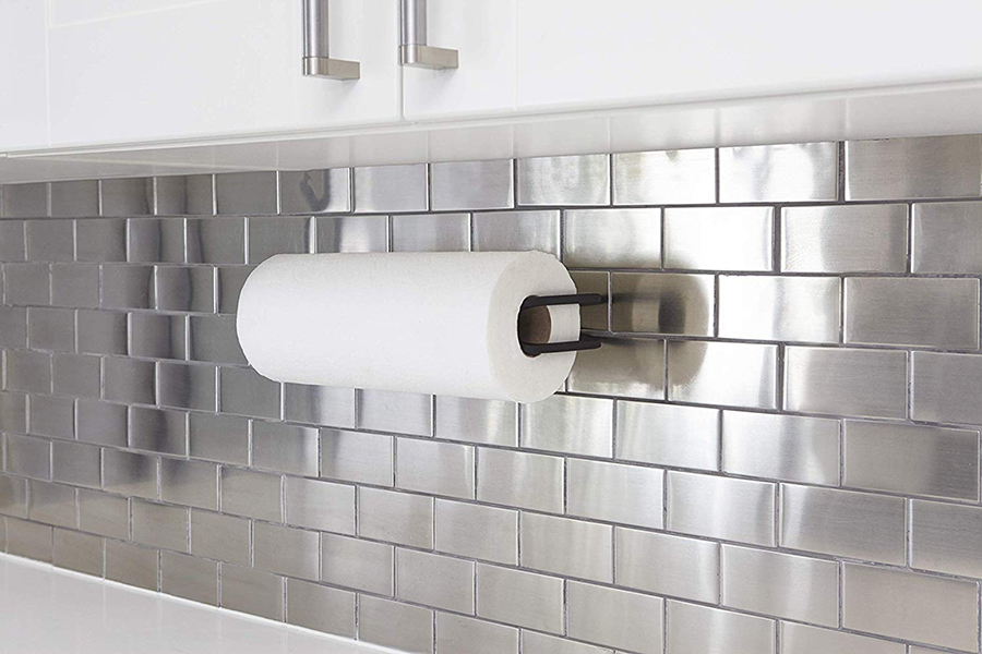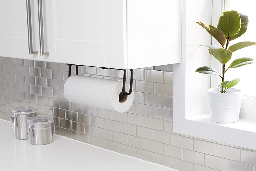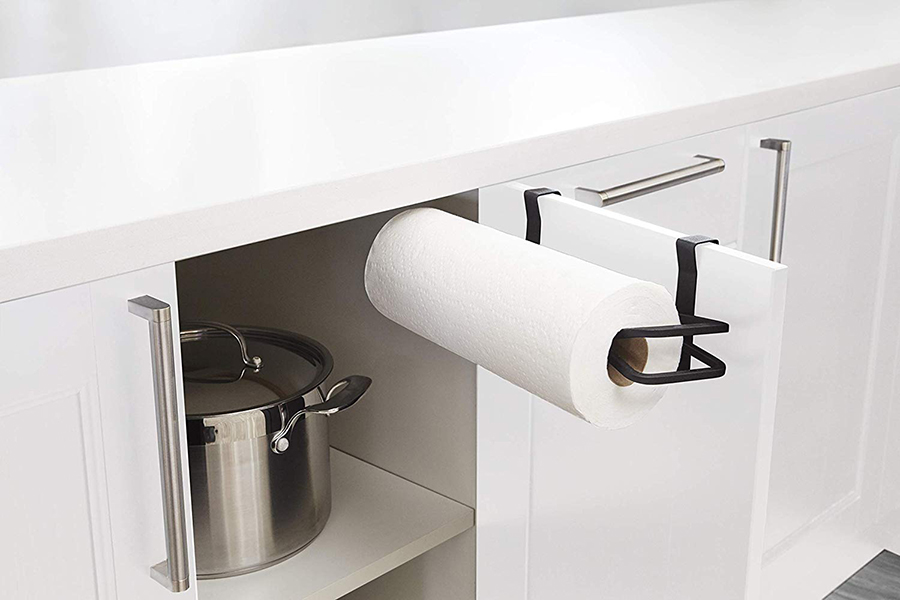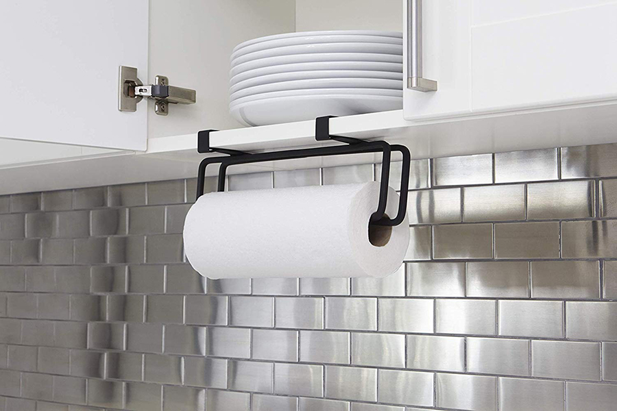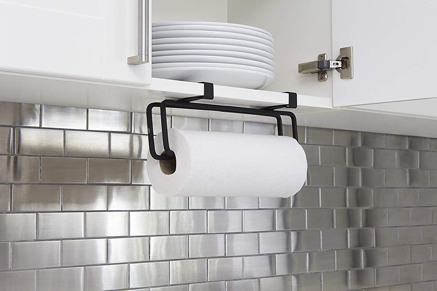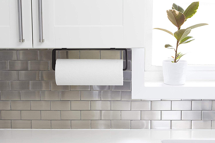 Держатель для бумажных полотенец в минималистичном дизайне поможет навести порядок и задействать неиспользованное пространство на кухне.