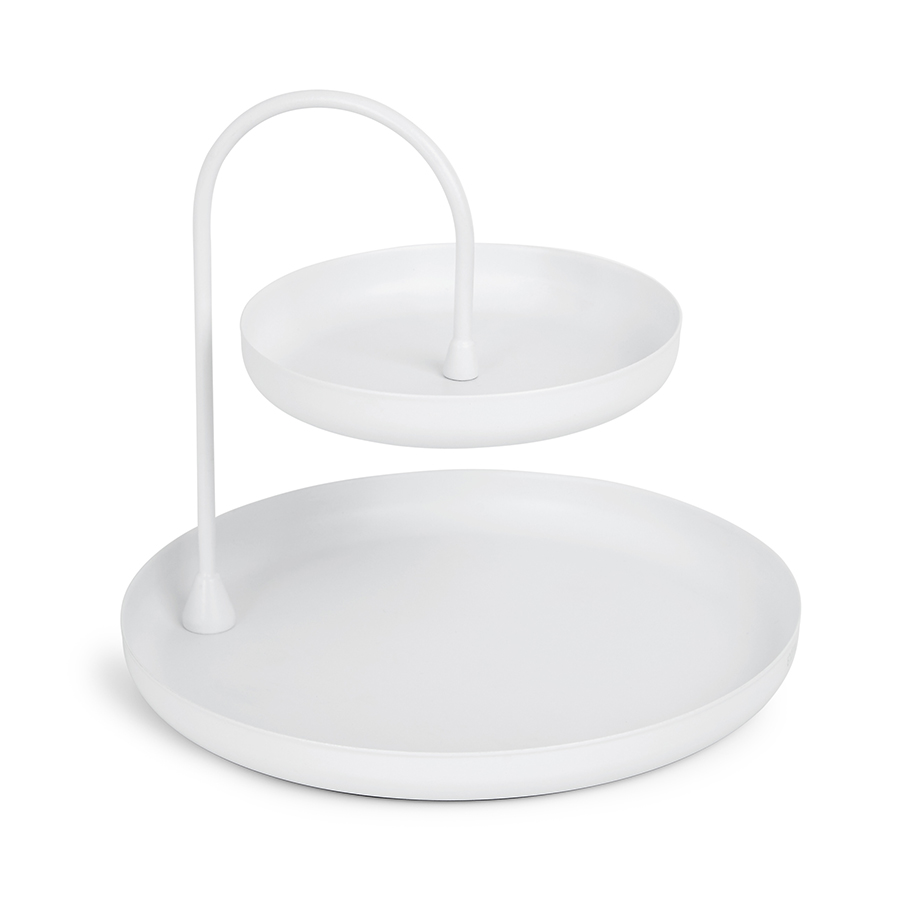 Держатель для украшений и аксессуаров Poise – практичное и стильное решение для хранения колец, сережек, браслетов, декоративной косметики. Верхний ярус предназначен для мелких предметов, а нижний – для более крупных, таких как ожерелья. За счет стильного оформления изделие органично впишется в любой интерьер, его можно поставить на туалетный столик, прикроватную тумбочку, комод, полку. Теперь все необходимые мелочи всегда будут под рукой!