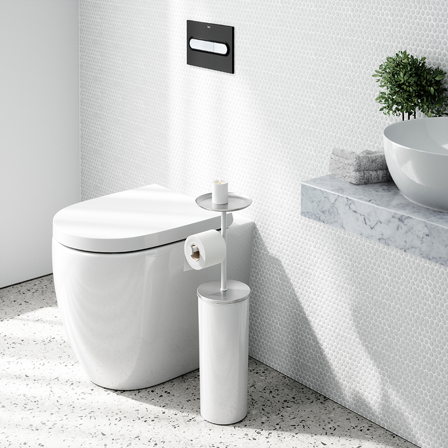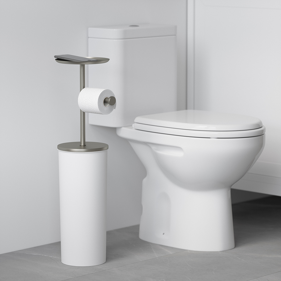 Конструкция предусматривает отсек, вмещающий до трех рулонов туалетной бумаги и дополнительную полочку для хранения. Компактный аксессуар поможет сэкономить место в ванной и впишется в любой интерьер.