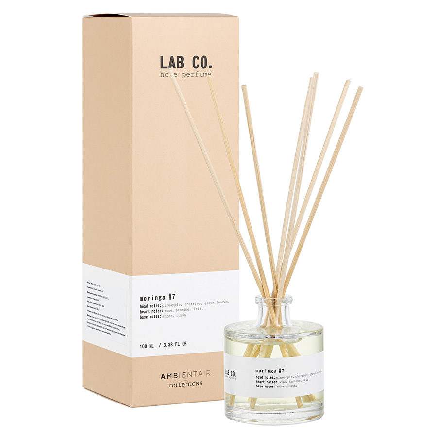 Moringa – аромат теплого, солнечного лета, в котором сочные ноты вишни и ананаса переплетаются со свежестью зелени и нежными цветочными аккордами. Парфюмерная композиция раскрывается постепенно и долго звучит. Диффузор имеет стильную упаковку, что позволяет использовать его в качестве необычного акцента интерьера.