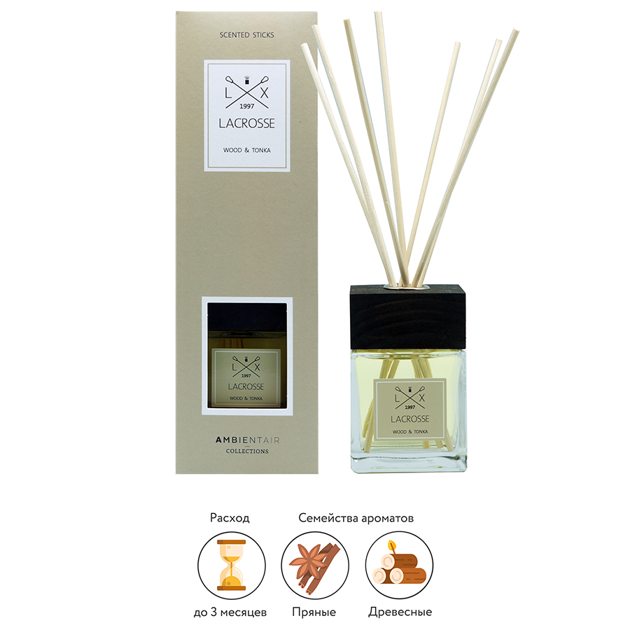 Выразительный и насыщенный аромат, в котором древесные ноты смягчены бобами тонка. Изысканная парфюмерная композиция подойдет для элегантных интерьеров и подарит ощущение умиротворения и расслабления.