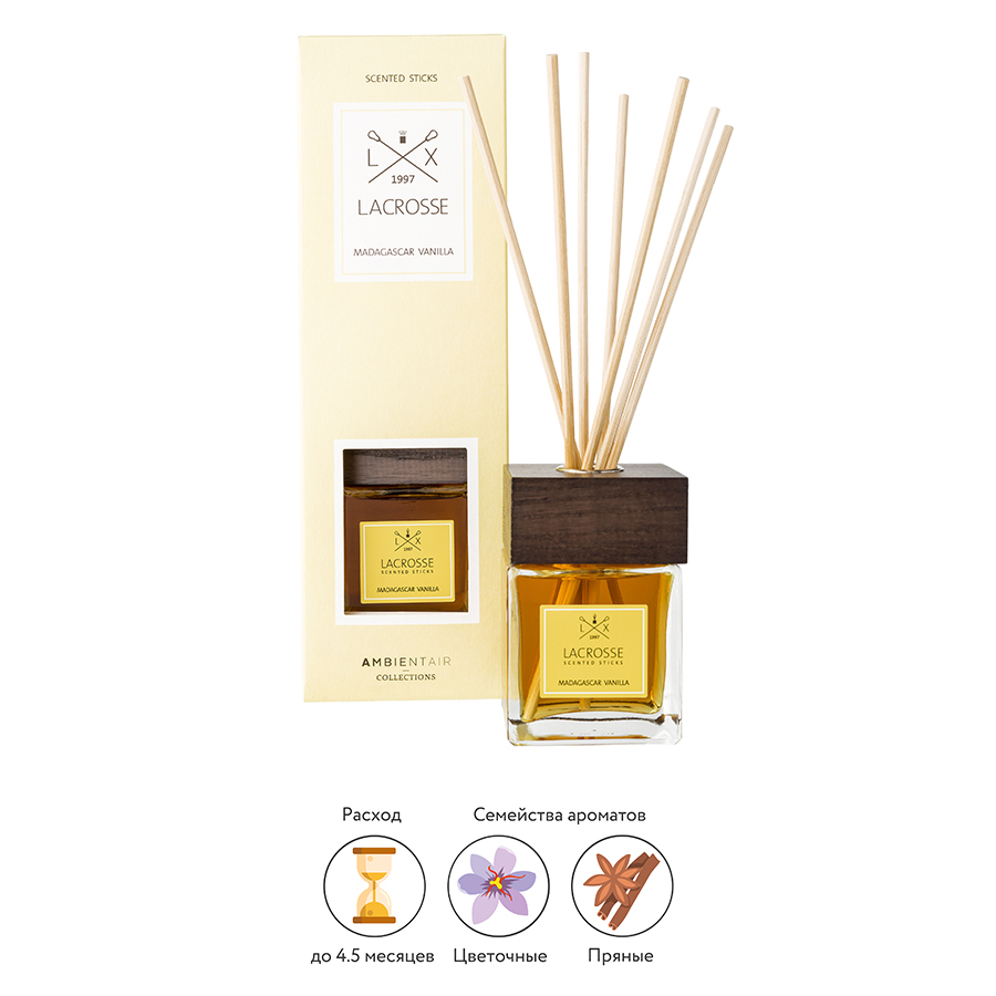 Ароматы для дома изготовлены на основе натуральных масел и дополнены тростниковыми палочками. Наполняют помещение сладким ванильным запахом.