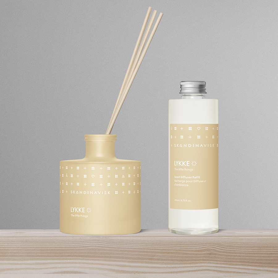 Аромат для дома Lykke – кусочек датского счастья в вашем доме. Это стильный и оригинальный подарок как для мужчин, так и для женщин. Изделие поставляется в стильной упаковке с парфюмированной жидкостью и ароматическими палочками из ротанга. Серия Lykke состоит из свежих и оптимистичных нот весенних подснежников, лимонной крапивы, яблок и мяты. Это жизнерадостный аромат, который придаст оптимизма и подарит минуты блаженства и счастья рядом с вашими близкими и родными в атмосфере домашнего уюта.
