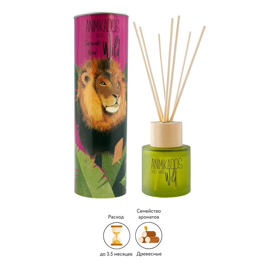 Ароматический диффузор Lion из коллекции Wild наполняет помещение опьяняющими древесными аккордами и создает атмосферу покоя, гармонии и душевного тепла. В комплект входят палочки из ротанга и флакон с парфюмерной композицией, которая изготовлена на основе натуральных эфирных масел.