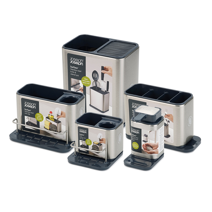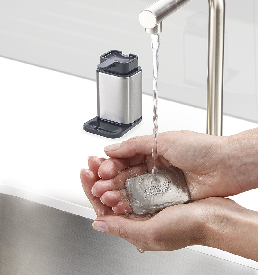 Диспенсер Surface — современное решение для организации рабочего пространства кухни. Он оригинально совмещает классическую емкость для жидкого мыла и стальное мыло для удаления запаха с рук (,например, после измельчения чеснока или лука),. Такой аксессуар незаменим на каждой кухне.