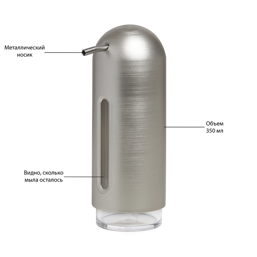 Дозатор имеет тонкое вертикальное окошко, чтобы вы могли контролировать остаток мыла. Прочная матовая помпа имеет мягкое покрытие и широкую поверхность, что помогает с легкостью дозировать мыло.