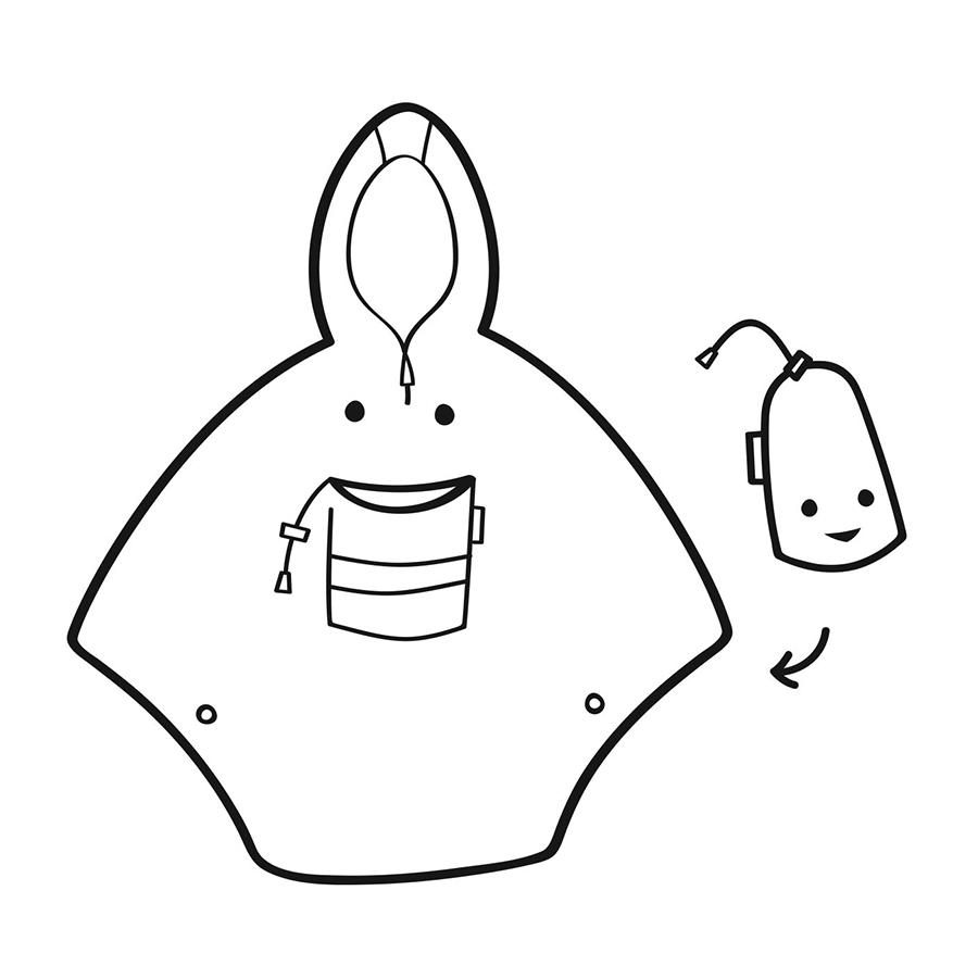 Дизайн дождевика продуман до мелочей: молния на широком воротнике и две кнопки подмышками. Он складывается до размеров внешнего кармана и его можно взять с собой на прогулку, в поход или путешествие. Дождевик создан в варианте one-size и подойдет абсолютно всем. Его можно быстро и легко надеть в любой момент: на это уйдет не больше минуты!