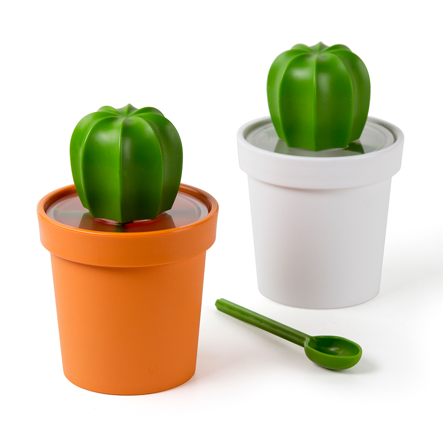 Универсальная емкость для хранения Cacnister в виде цветочного горшка с кактусом станет отличным дополнением к сервировке стола для чаепития. Модель оборудована герметичной крышкой и удобной пластиковой ложкой.
