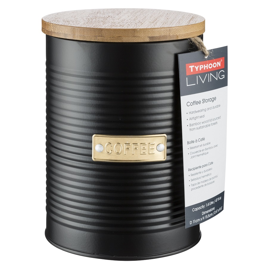 Емкость для хранения кофе Otto поможет организовать рабочее пространство на вашей кухне. Эргономичный контейнер выполнен из эмалированной стали, стойкой к коррозии и деформации. Бамбуковая крышка с воздухопроницаемым уплотнителем из силикона продлевает свежесть продуктов и защищает их от воздействия влаги. При создании изделия дизайнеры используют золотистый декор, который безупречно сочетается с матовым покрытием черного цвета. Благодаря этому емкость добавит элегантности классическому и современному интерьеру кухни.