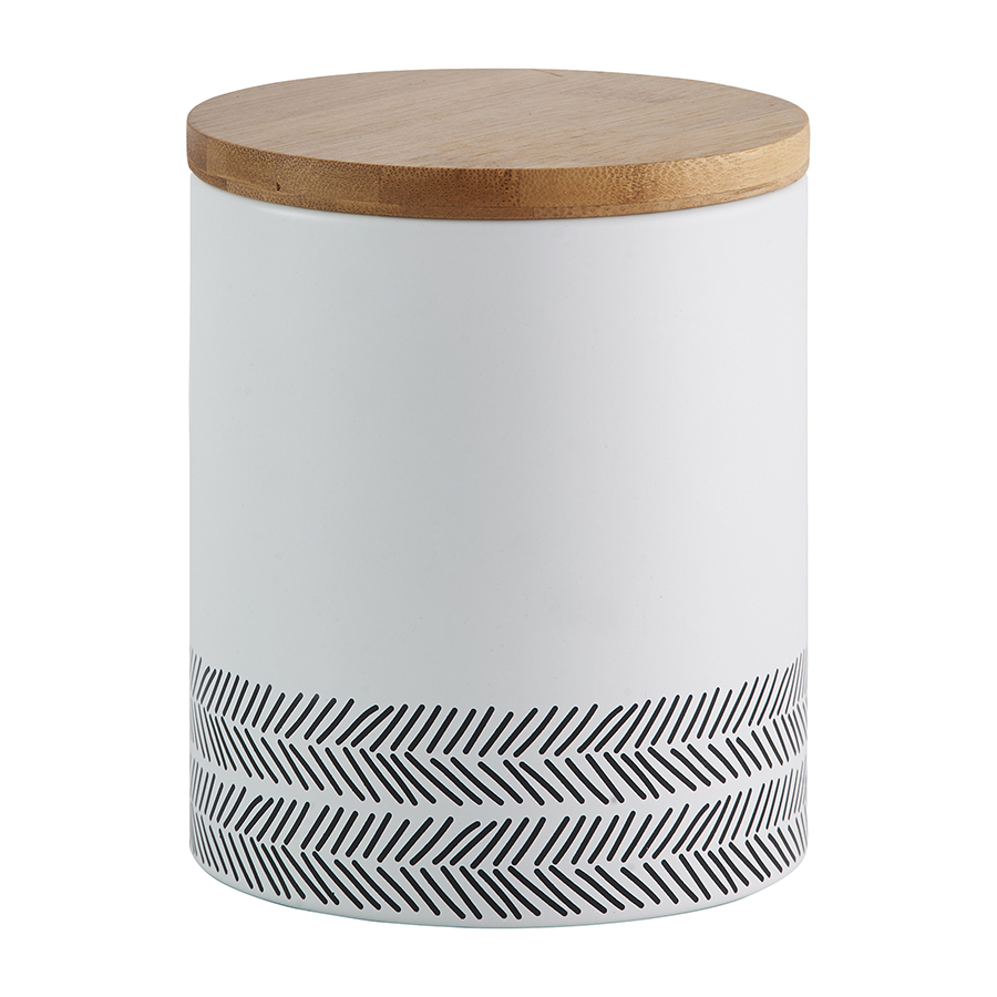 Емкость для хранения Monochrome поможет организовать рабочее пространство на вашей кухне. Эргономичный контейнер из эмалированной стали подходит для чая, круп, пасты и всех видов кондитерских изделий. Бамбуковая крышка с воздухопроницаемым уплотнителем из силикона продлевает свежесть продуктов и защищает их от воздействия влаги.