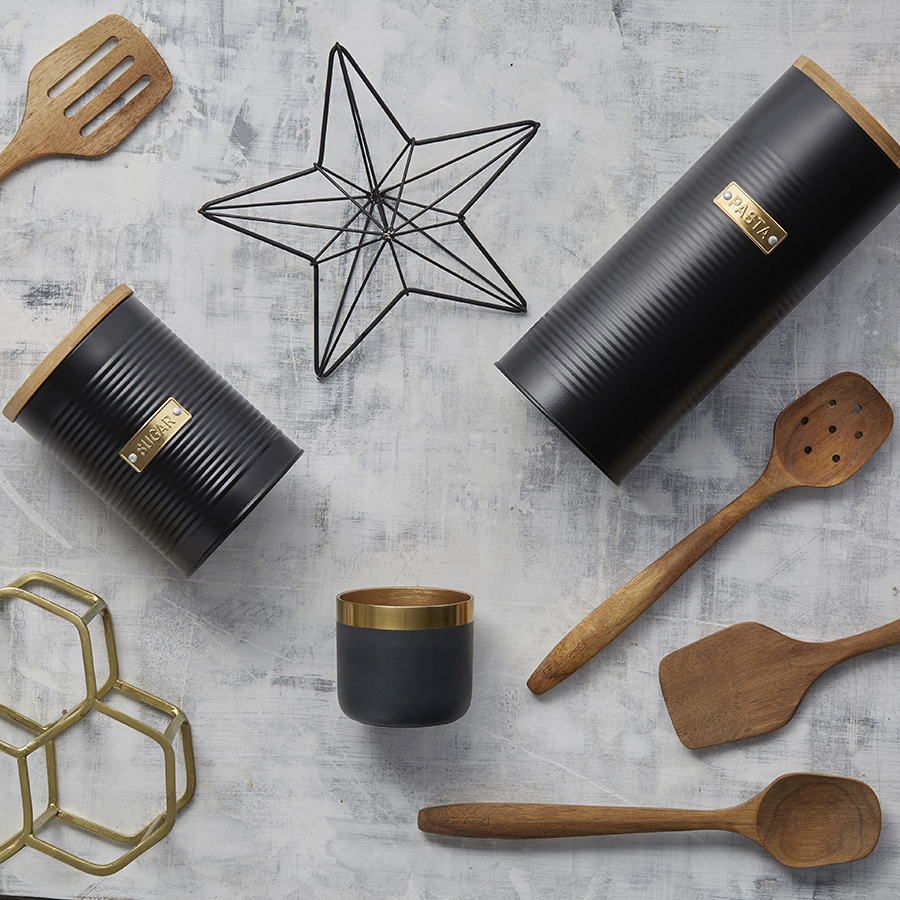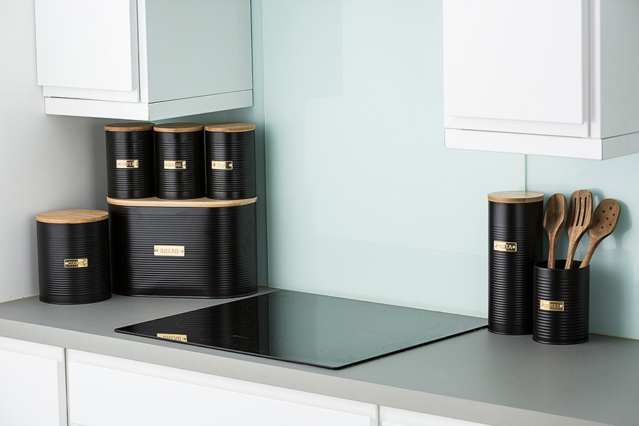 Емкость для хранения пасты Otto поможет максимально освободить рабочее пространство на вашей кухне. Эргономичный контейнер из эмалированной стали подходит для всех видов макаронных изделий. Бамбуковая крышка с воздухопроницаемым уплотнителем из силикона продлевает свежесть продуктов. При создании изделия дизайнеры используют золотистый декор, который безупречно сочетается с матовым покрытием черного цвета. Благодаря этому емкость добавит элегантности классическому и современному интерьеру кухни.