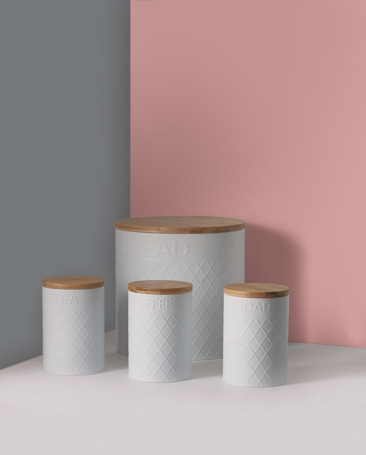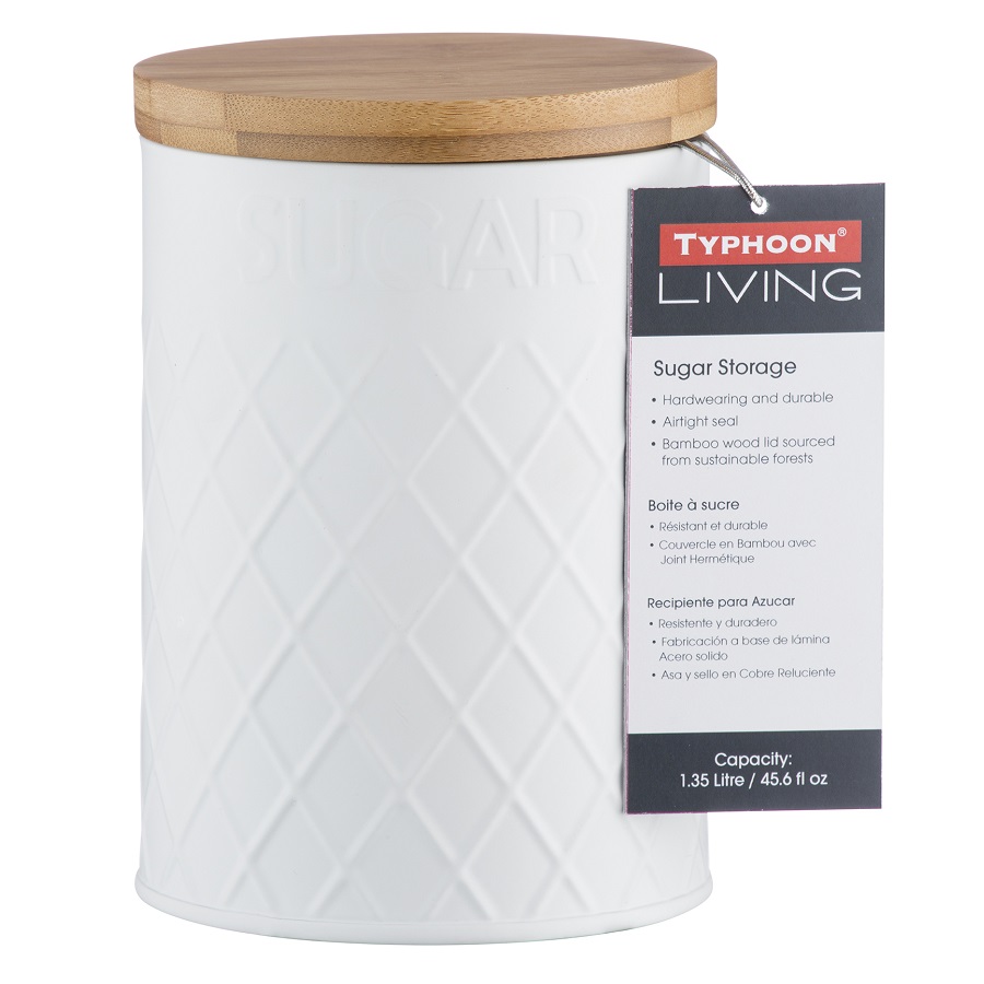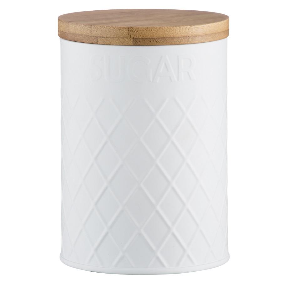 Красивая емкость для хранения сахара Embossed выполнена в элегантном дизайне. Модель изготовлена из оцинкованной стали, на которую нанесена эмаль. Плотная деревянная крышка с силиконовым уплотнителем надежно закрывает контейнер от попадания посторонних запахов и влаги.