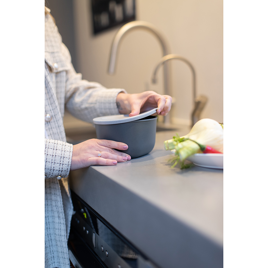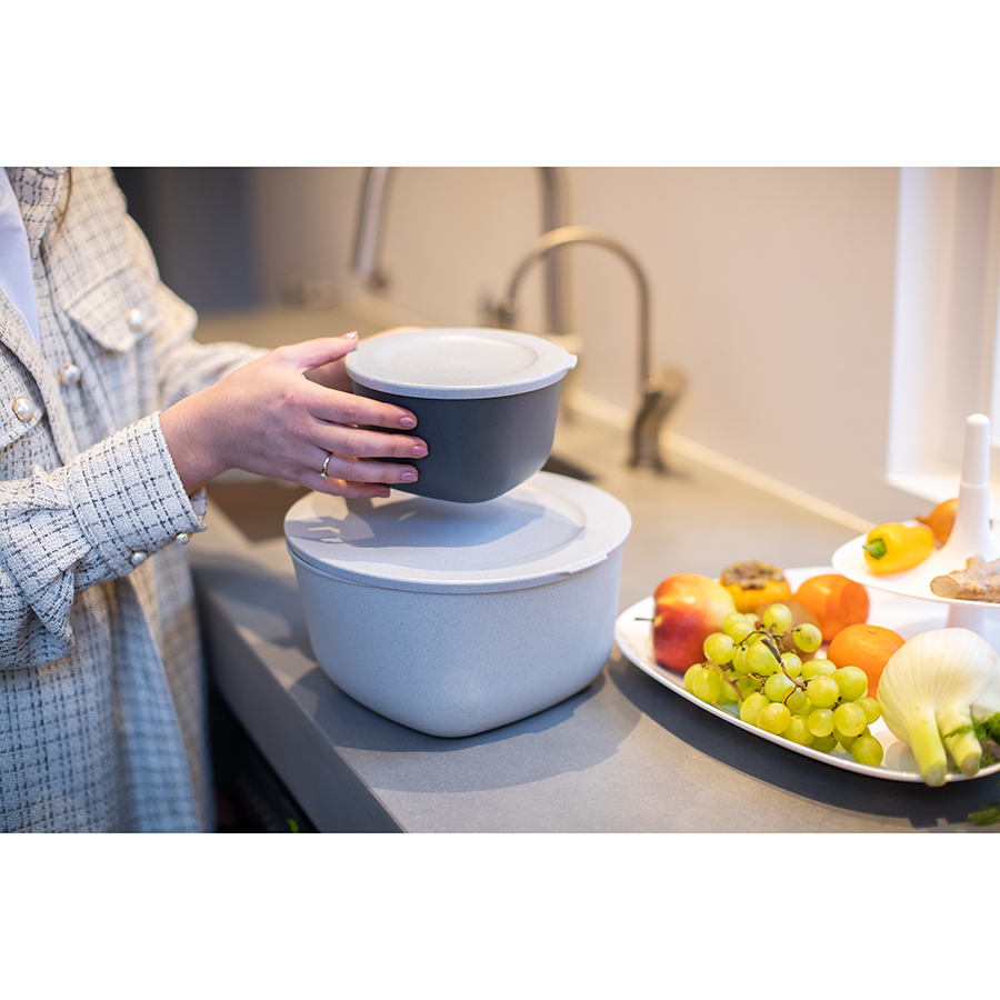 Герметичная крышка защищает продукты от заветривания, предотвращает распространение запахов и проливание. Контейнер не скользит даже в мокрых руках. Материал обладает высокой прочностью и не содержит бисфенола-А и меламина.