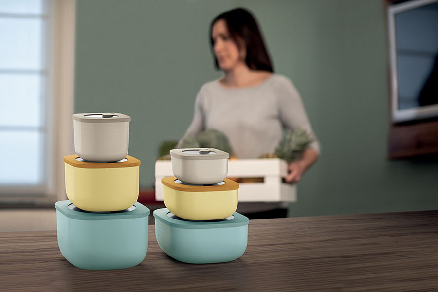 Пищевой контейнер Store&More объемом 1,9 л идеально подходит для использования дома и на открытом воздухе. Посуда предназначена для хранения продуктов в холодильнике или морозильной камере, нагрева в микроволновой печи, транспортировки и подачи блюд. Идея создания пищевого контейнера в форме куба с плавными обтекаемыми углами принадлежит дизайнерской студии Spalvieri & Del Ciotto.