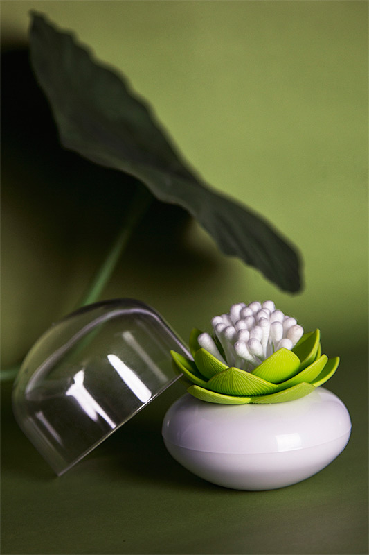 Контейнер для хранения ватных палочек Lotus помимо своих основных функций, будет прекрасным элементом декора для Вашей спальни или ванной комнаты.