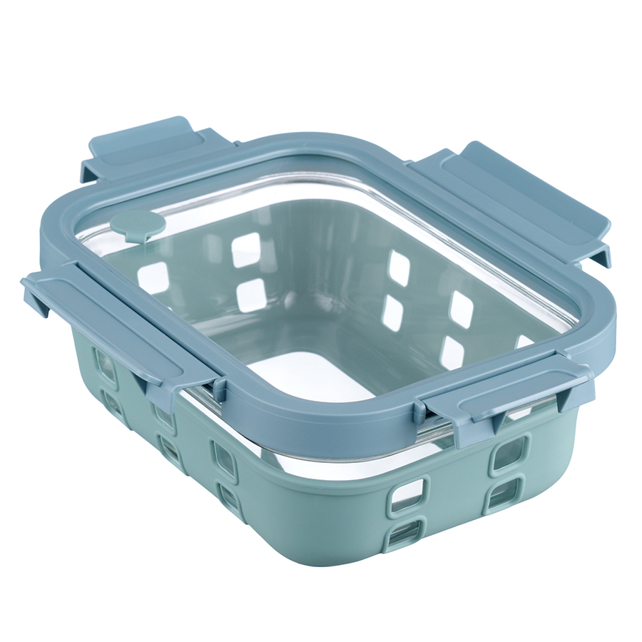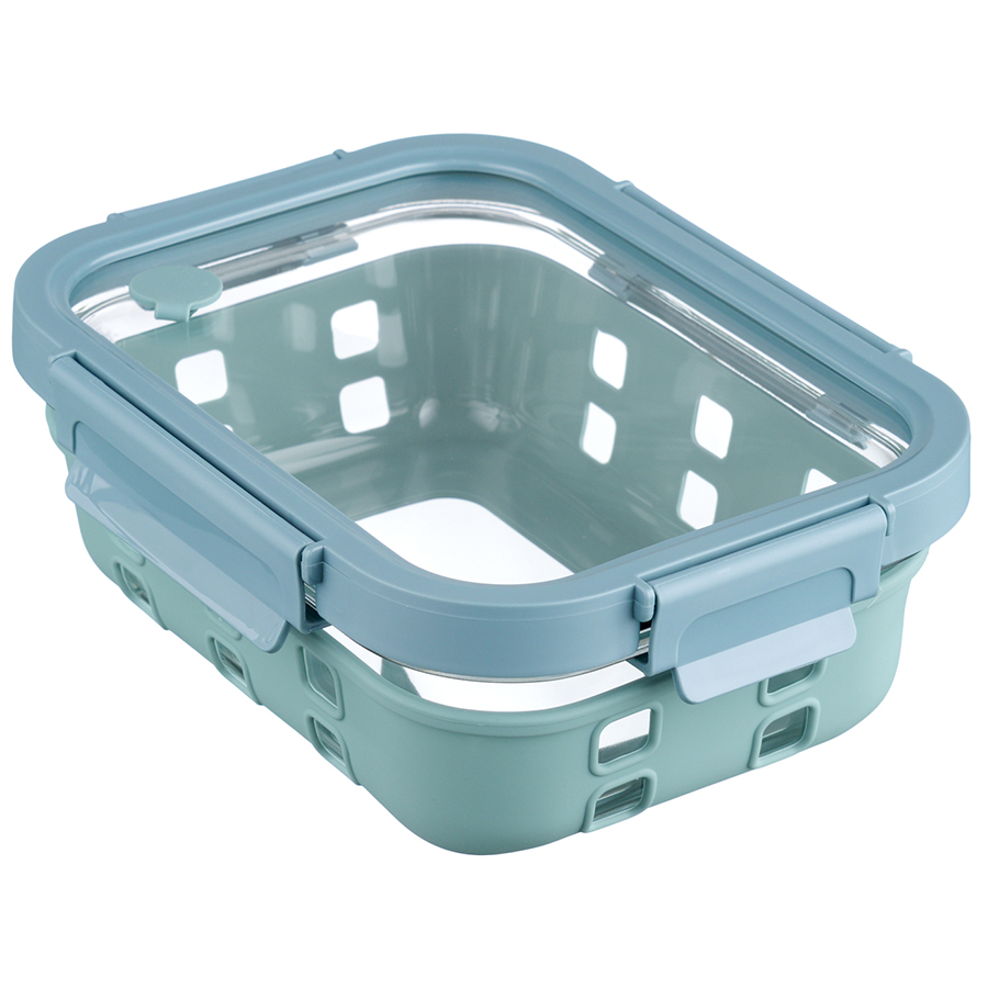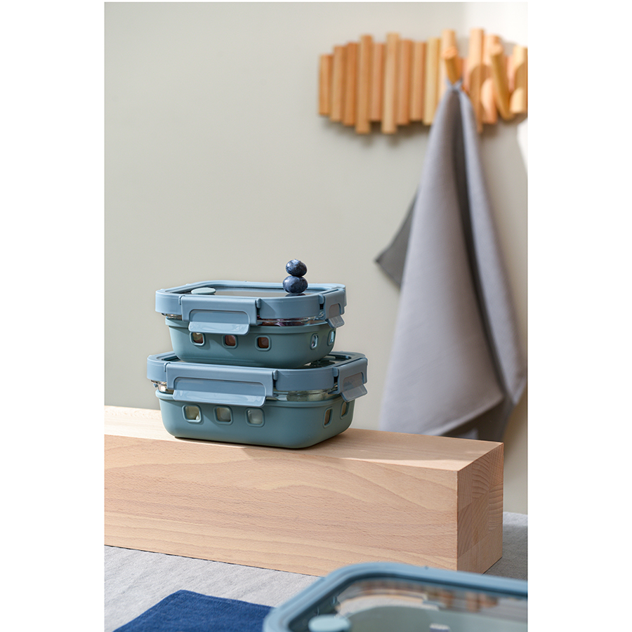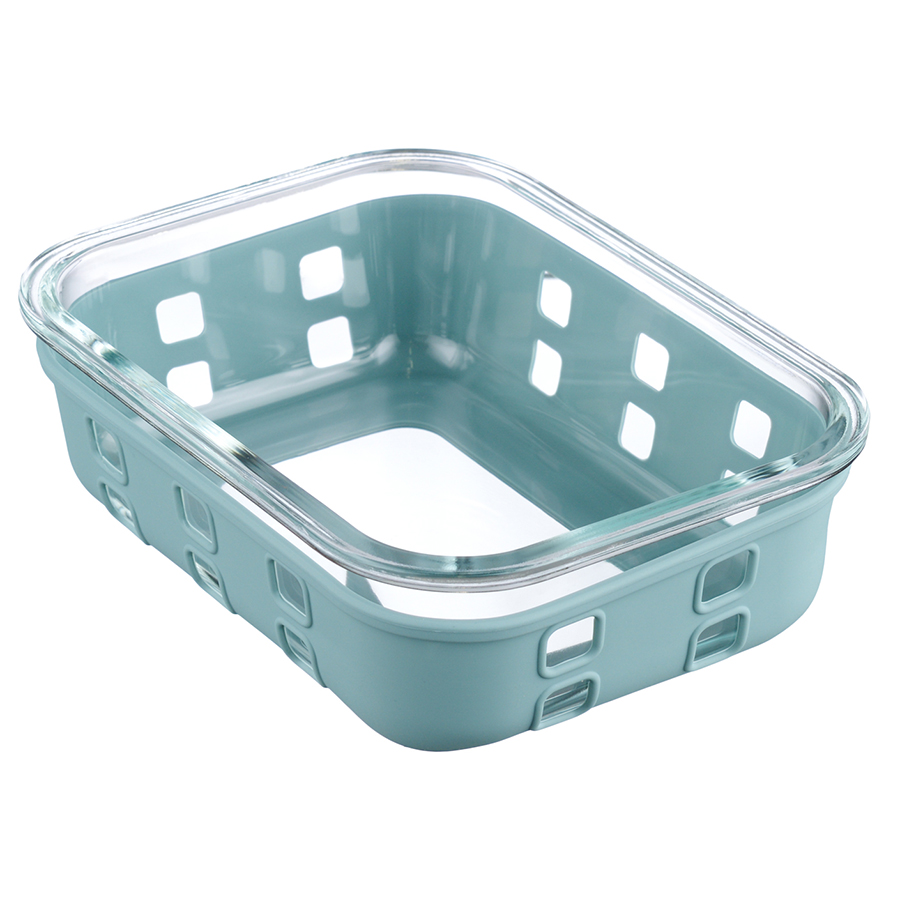 Контейнер из боросиликатного стекла в чехле из силикона отлично подходит для хранения, запекания и транспортировки продуктов, в том числе готовых блюд. Емкость закрывается крышкой с надежными пластиковыми замками на каждой стороне. Материалы не содержат бисфенол-А и являются абсолютно безопасными для здоровья. Наличие специального вентиляционного отверстия позволяет выпустить из контейнера лишний воздух или горячий пар, что повышает герметичность и улучшает условия хранения продуктов.
