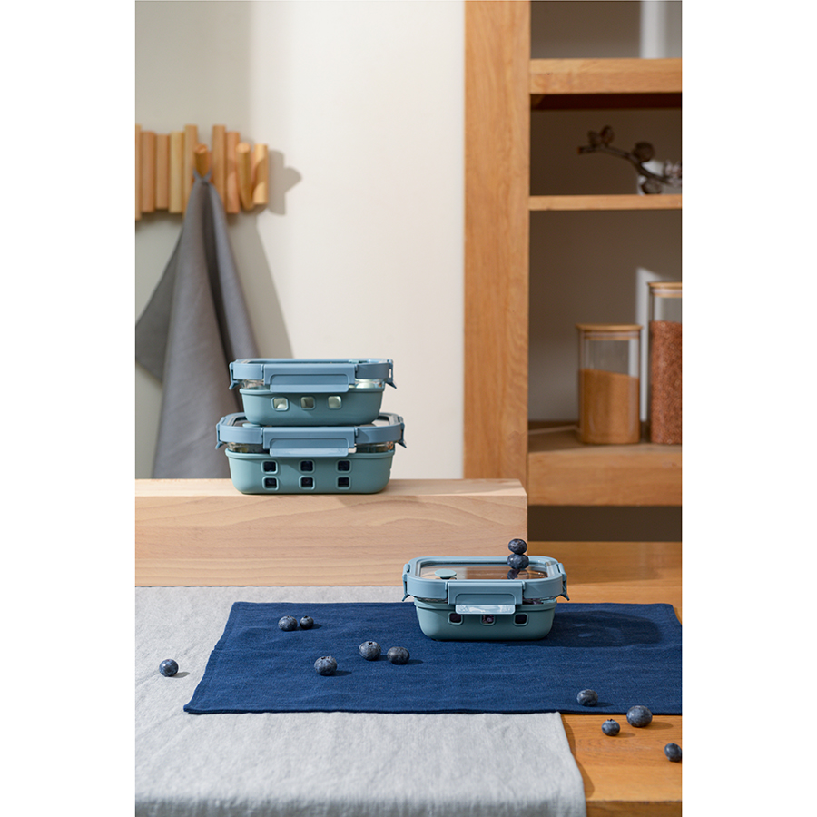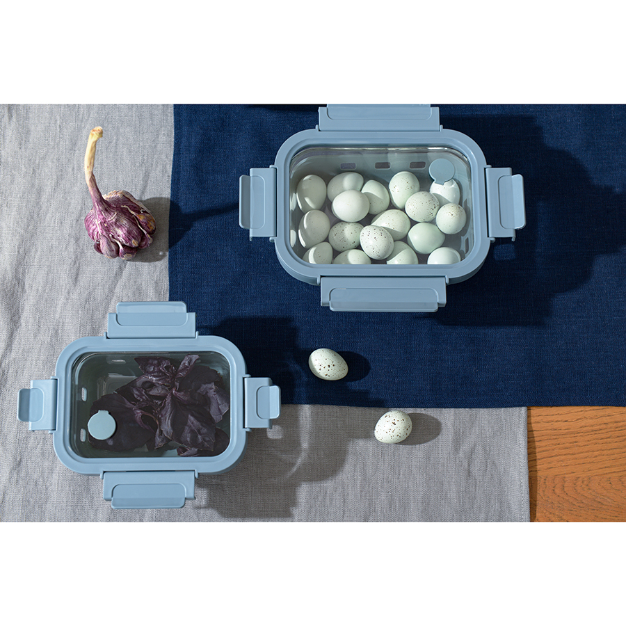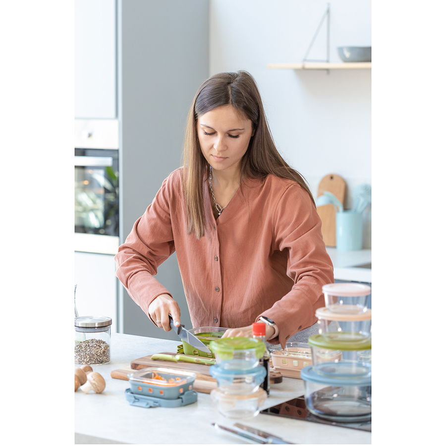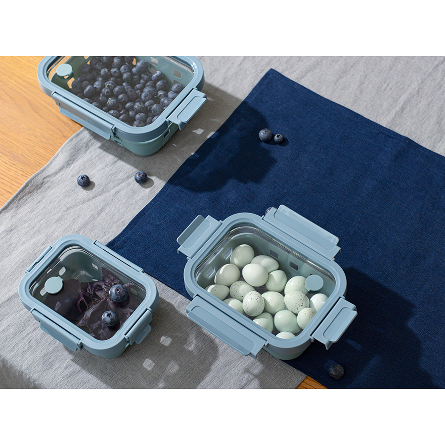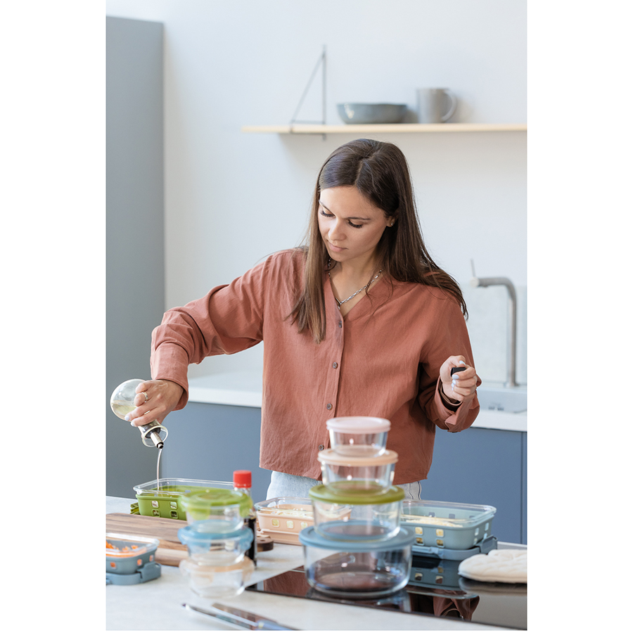 Контейнер из боросиликатного стекла в чехле из силикона отлично подходит для хранения, запекания и транспортировки продуктов, в том числе готовых блюд. Емкость закрывается крышкой с надежными пластиковыми замками на каждой стороне. Материалы не содержат бисфенол-А и являются абсолютно безопасными для здоровья. Наличие специального вентиляционного отверстия позволяет выпустить из контейнера лишний воздух или горячий пар, что повышает герметичность и улучшает условия хранения продуктов.