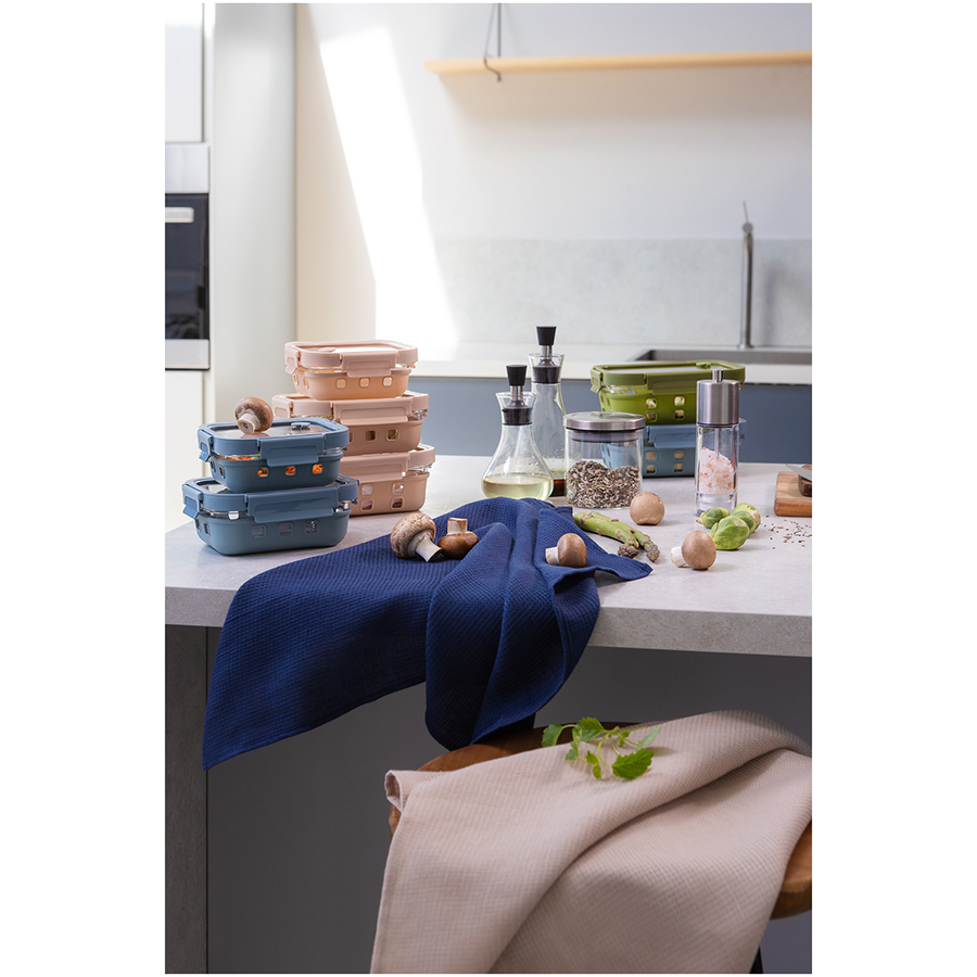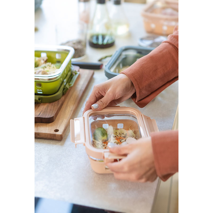 Контейнер в чехле отлично подходит для хранения, запекания и транспортировки продуктов, в том числе готовых блюд. Емкость из боросиликатного стекла закрывается крышкой с надежными замками на каждой стороне. Материал не содержит бисфенола-А и является абсолютно безопасным для здоровья. Наличие специального вентиляционного отверстия позволяет выпустить из контейнера лишний воздух или горячий пар, что повышает герметичность и улучшает условия хранения продуктов.