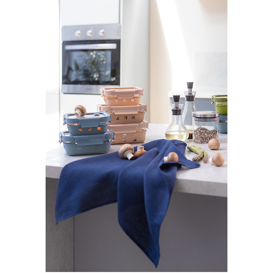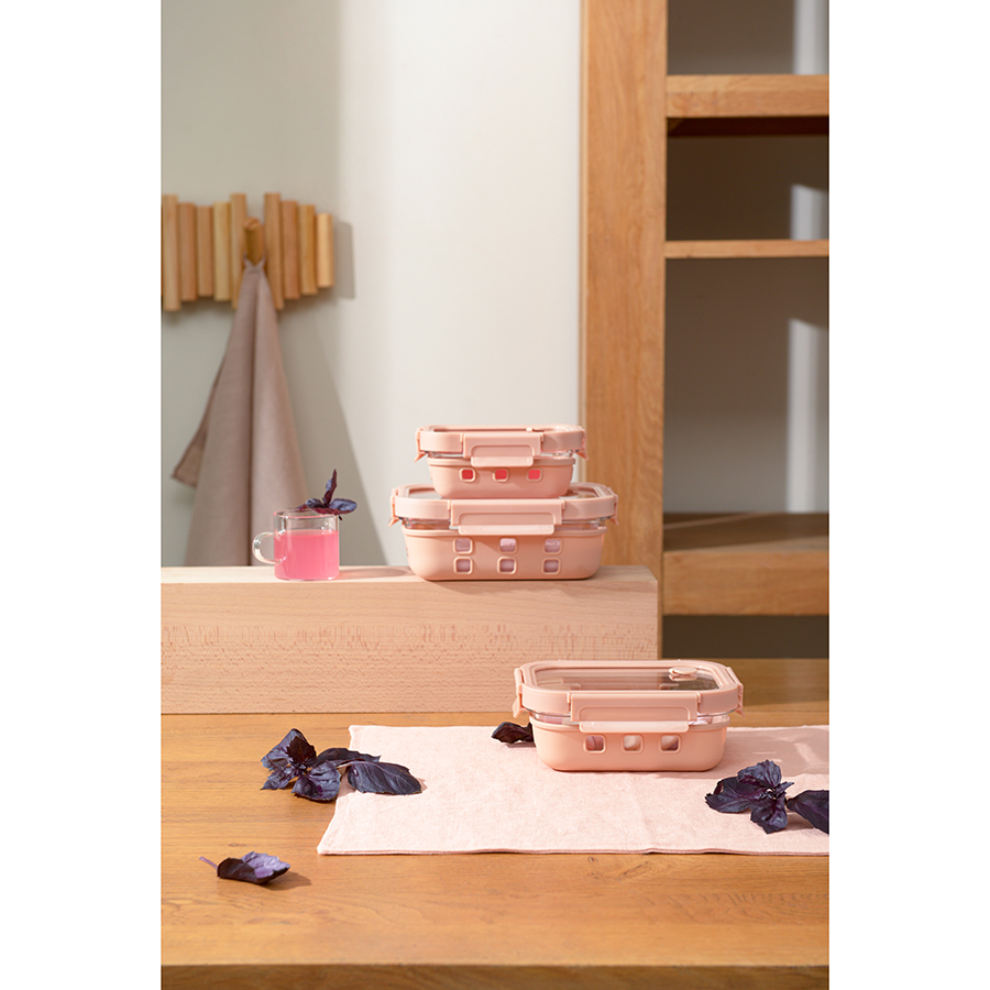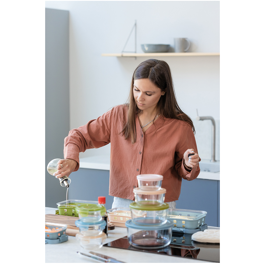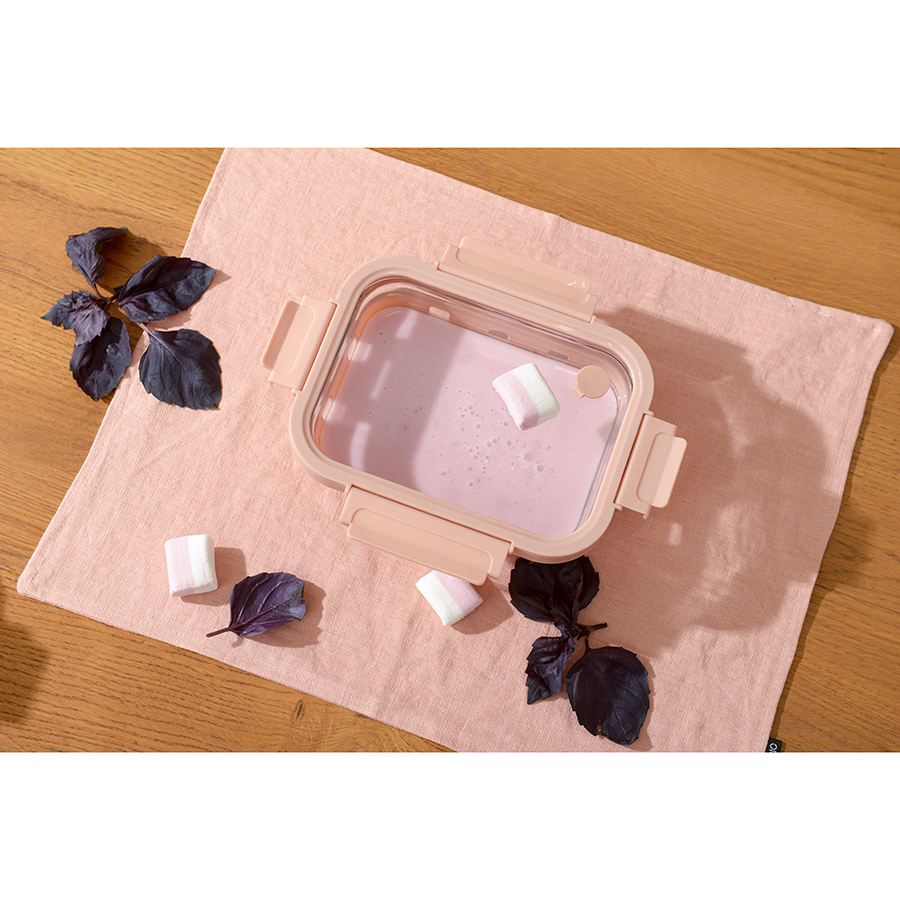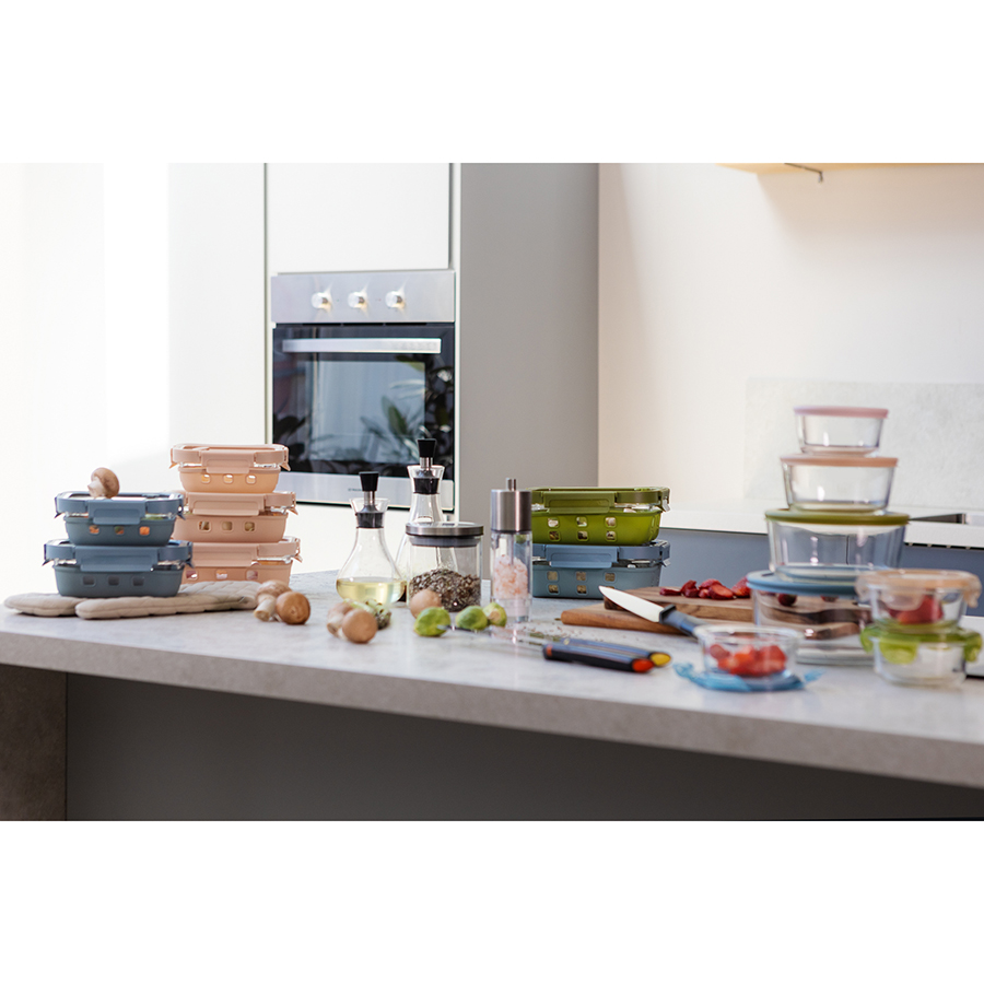 Контейнер в чехле отлично подходит для хранения, запекания и транспортировки продуктов, в том числе готовых блюд. Емкость из боросиликатного стекла закрывается крышкой с надежными замками на каждой стороне. Материал не содержит бисфенола-А и является абсолютно безопасным для здоровья. Наличие специального вентиляционного отверстия позволяет выпустить из контейнера лишний воздух или горячий пар, что повышает герметичность и улучшает условия хранения продуктов.