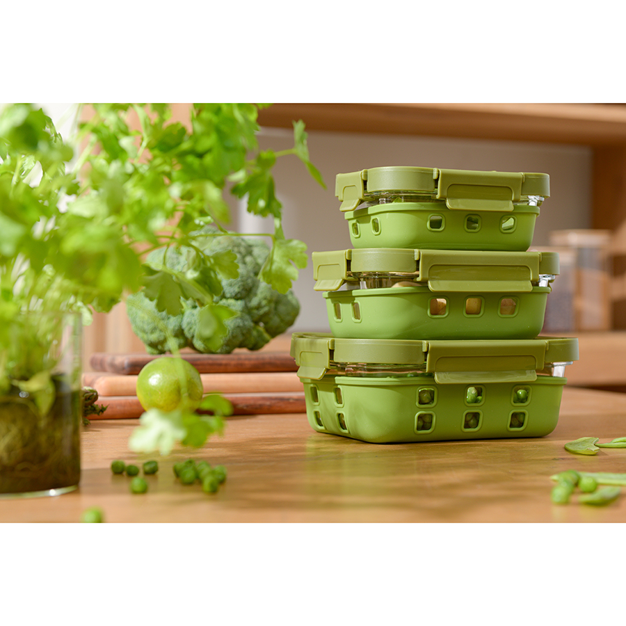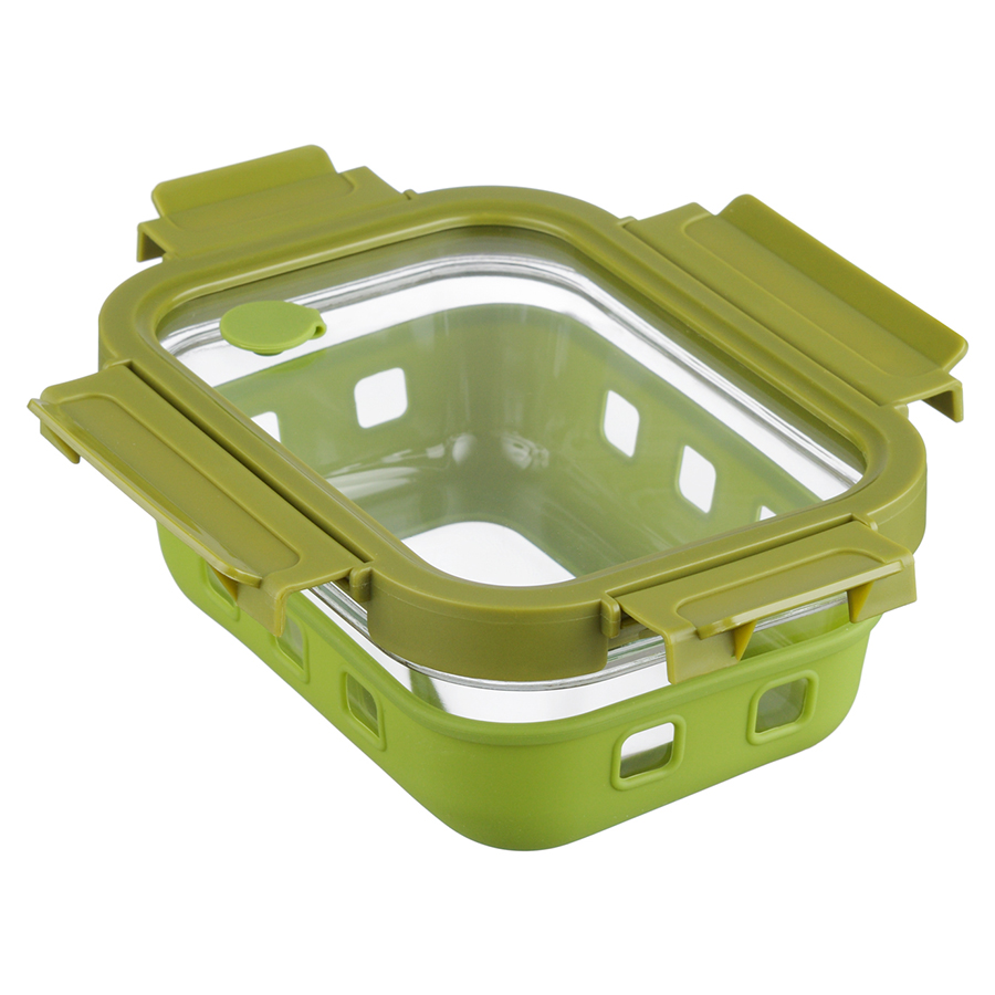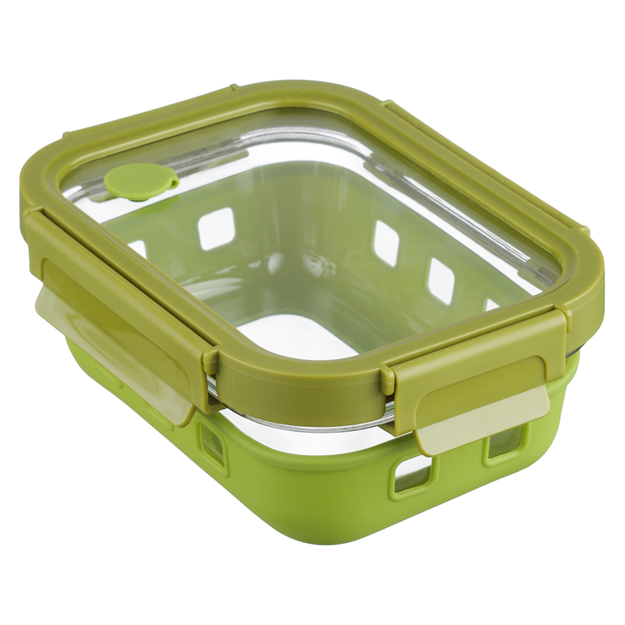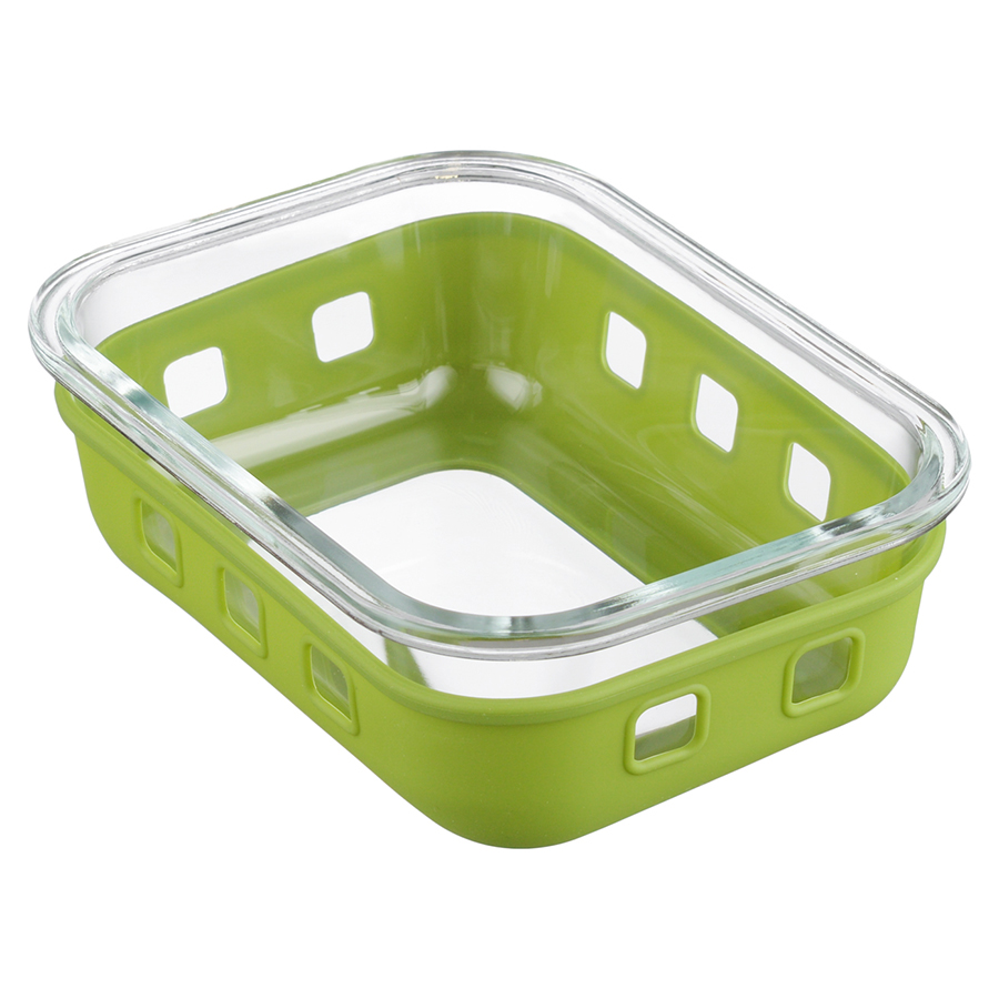 Контейнер в чехле отлично подходит для хранения, запекания и транспортировки продуктов, в том числе готовых блюд. Емкость из боросиликатного стекла закрывается крышкой с надежными замками на каждой стороне. Материал не содержит бисфенола-А и является абсолютно безопасным для здоровья. Наличие специального вентиляционного отверстия позволяет выпустить из контейнера лишний воздух или горячий пар, что повышает герметичность и улучшает условия хранения продуктов.
